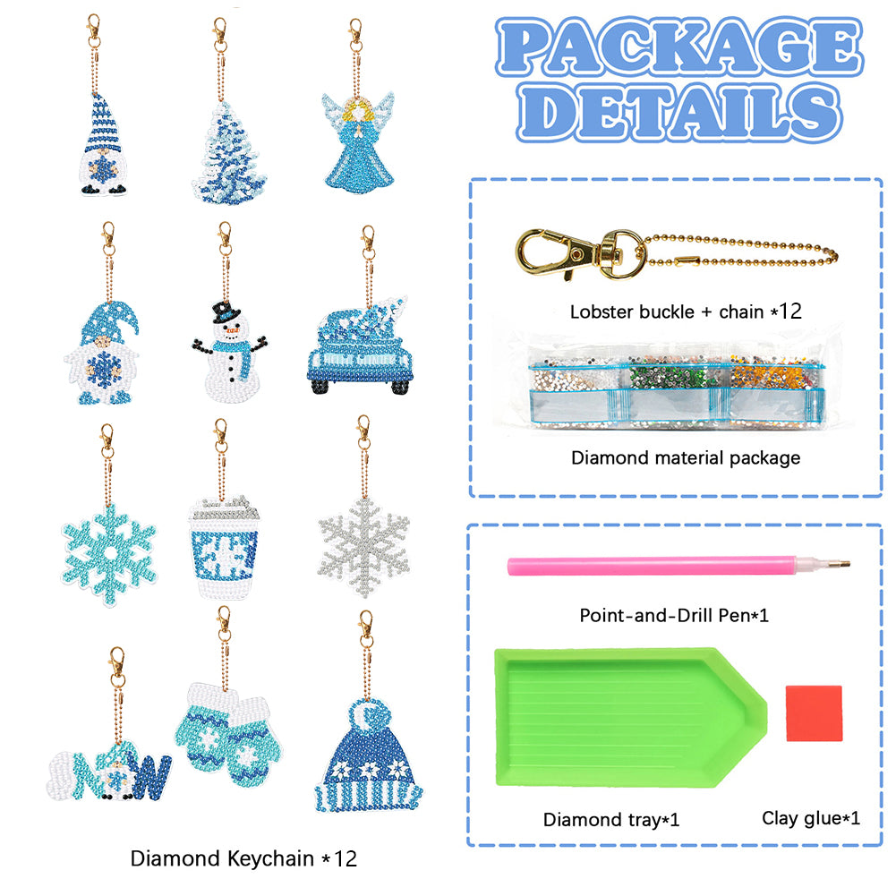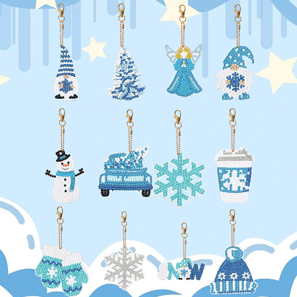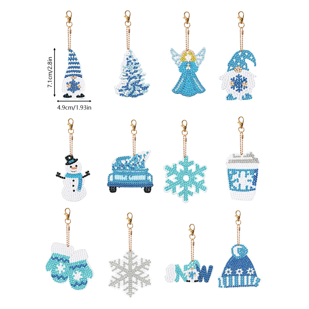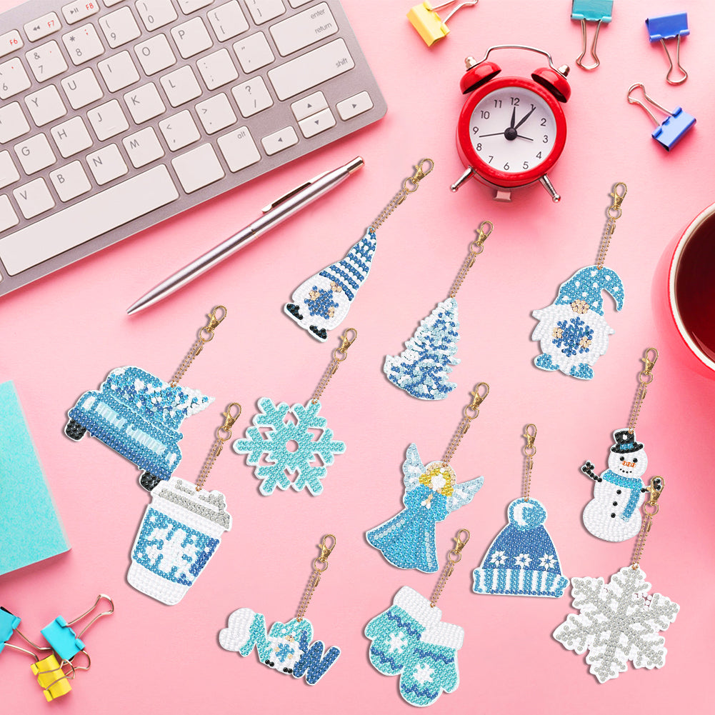 12PCS Double Sided Special Shape Diamond Painting Art Keychain Pendant Snowflake