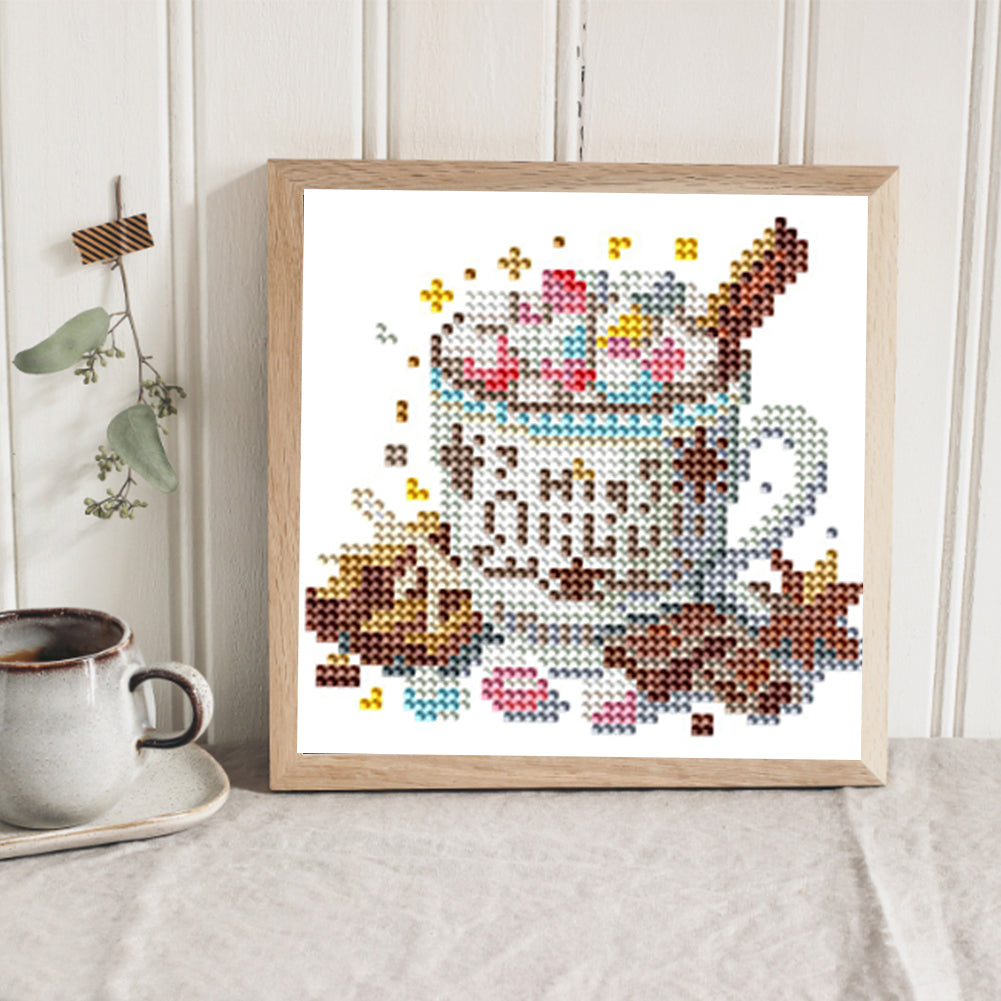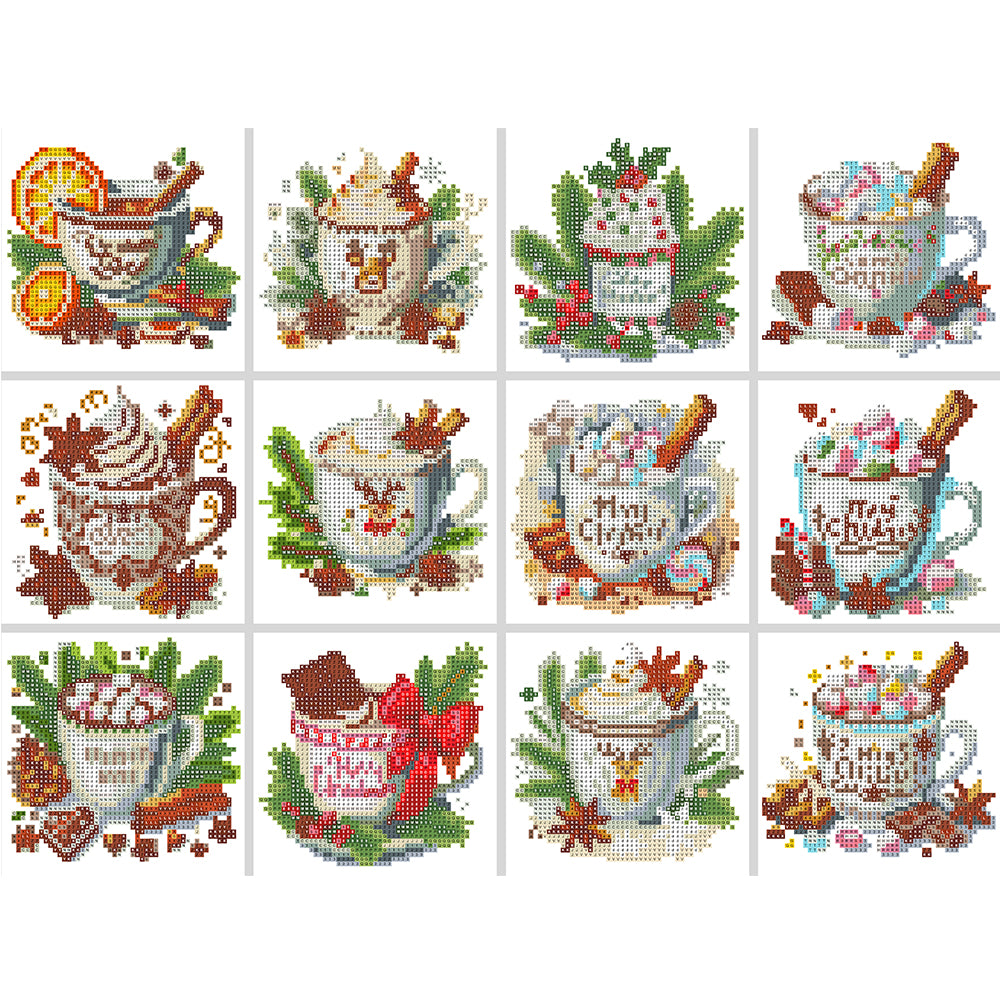 12pcs Mini Diamond Painting Set - Full Round - Christmas cocoa coffee (15*15CM)