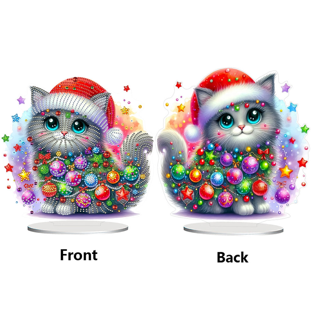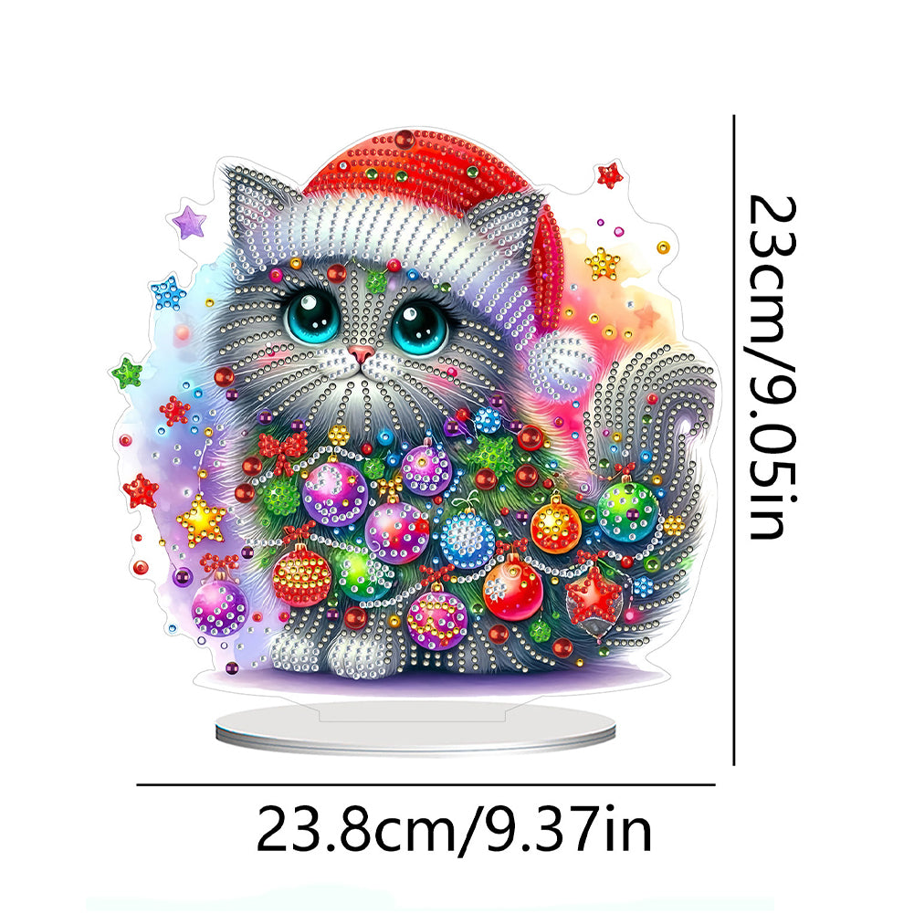 2D Flat Christmas Cat Table Top Diamond Painting Ornament Kits Home Decor
