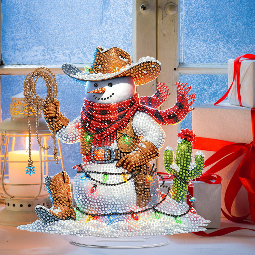 2D Flat Print Western Cowboy Snowman DIY Table Top Diamond Painting Ornament Kit