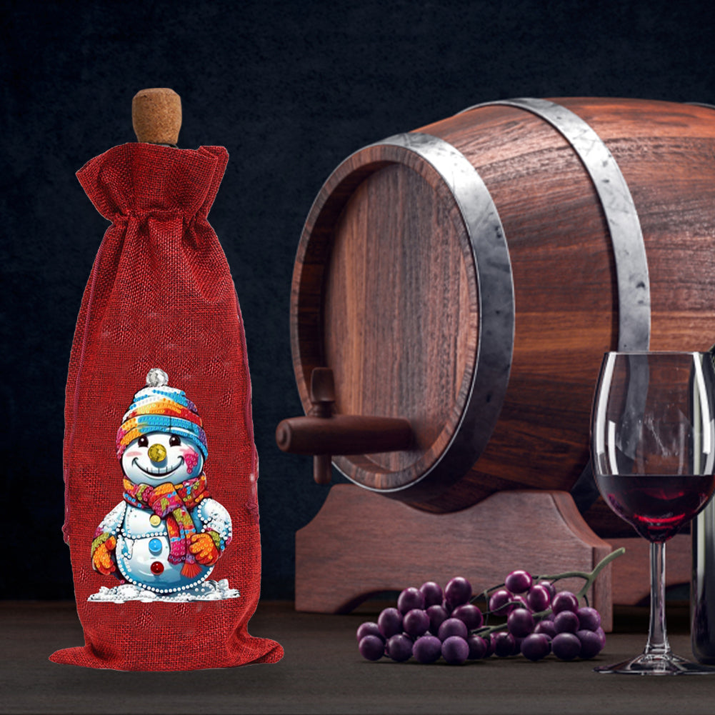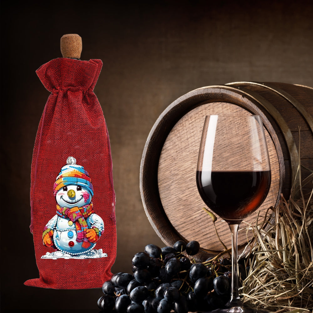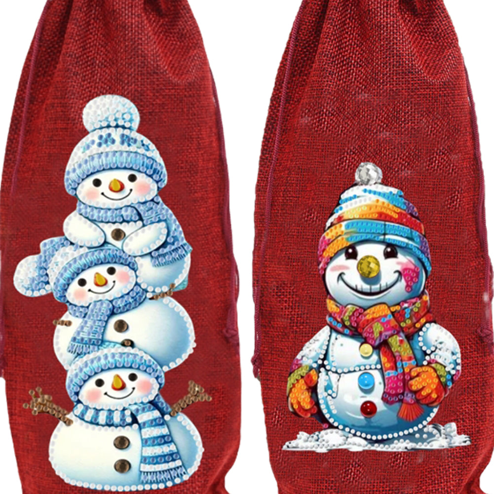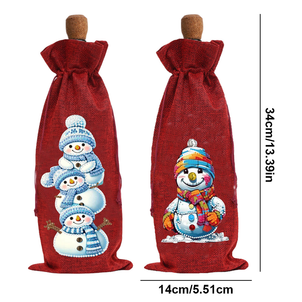 2pcs Christmas Diamond Art Linen Wine Gift Bag Diamond Painting Red Wine Bag (C)