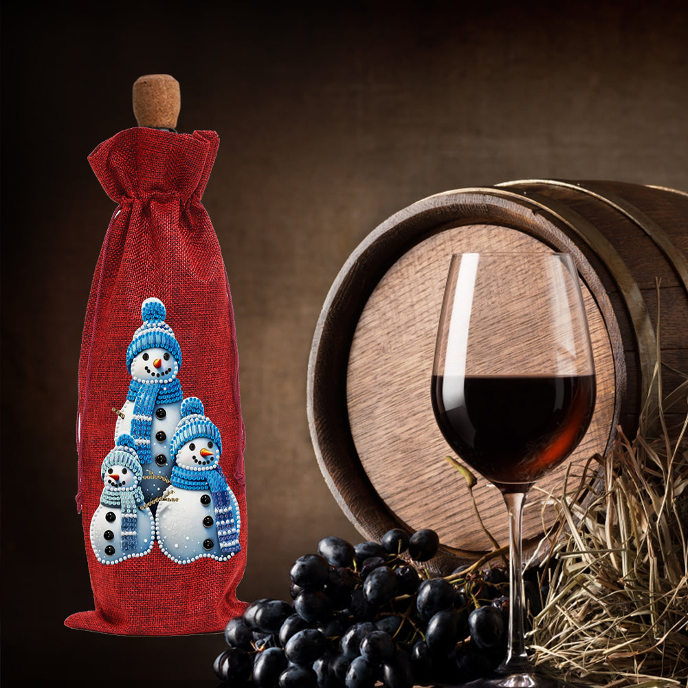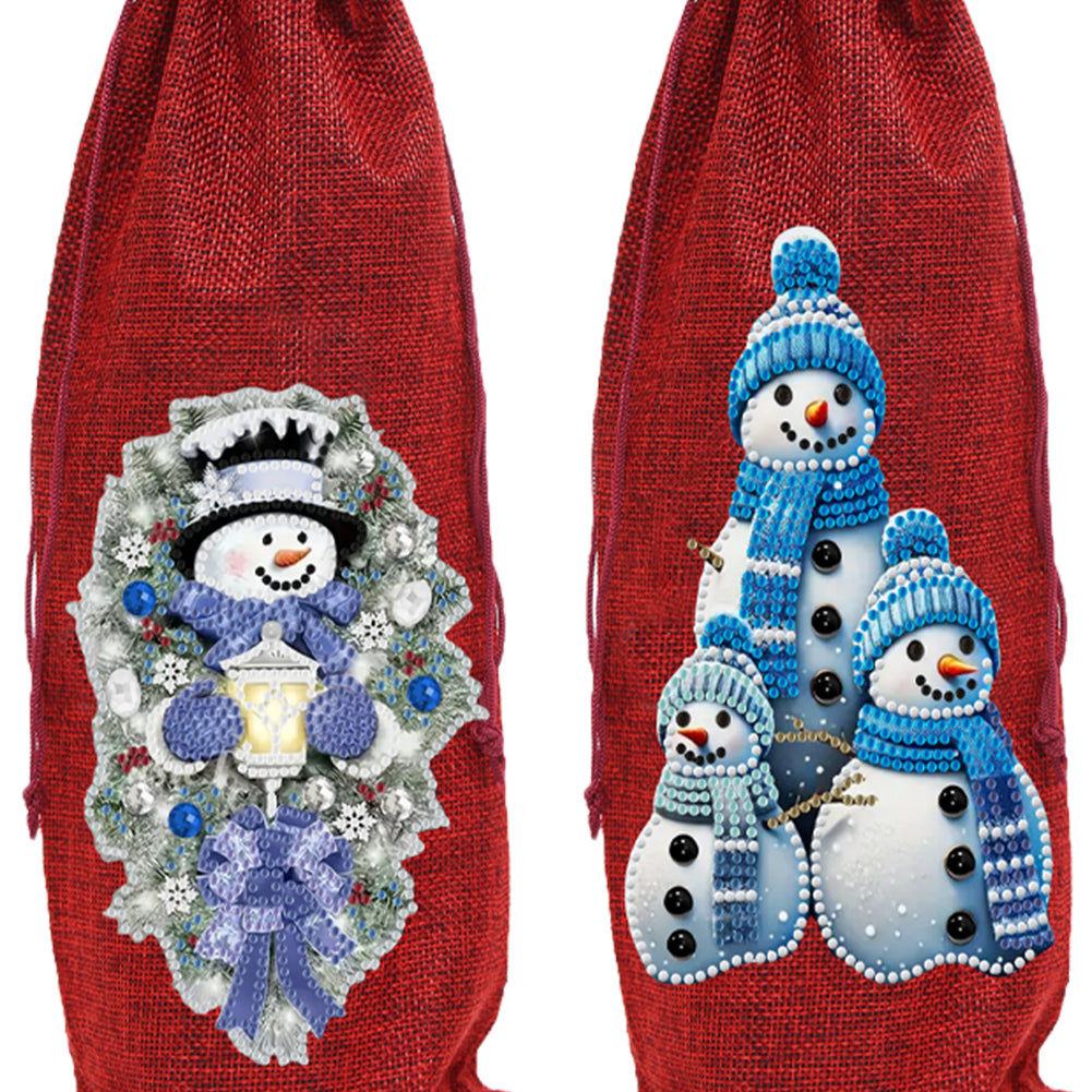 • Load image into Gallery viewer, 2pcs Christmas Diamond Art Linen Wine Gift Bag Diamond Painting Red Wine Bag (D)