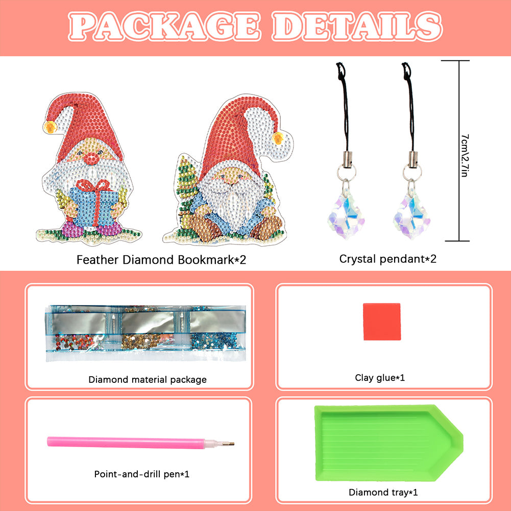 2Pcs Special Shape Christmas Tree Diamond Painting Bookmark for Reading Day Gift