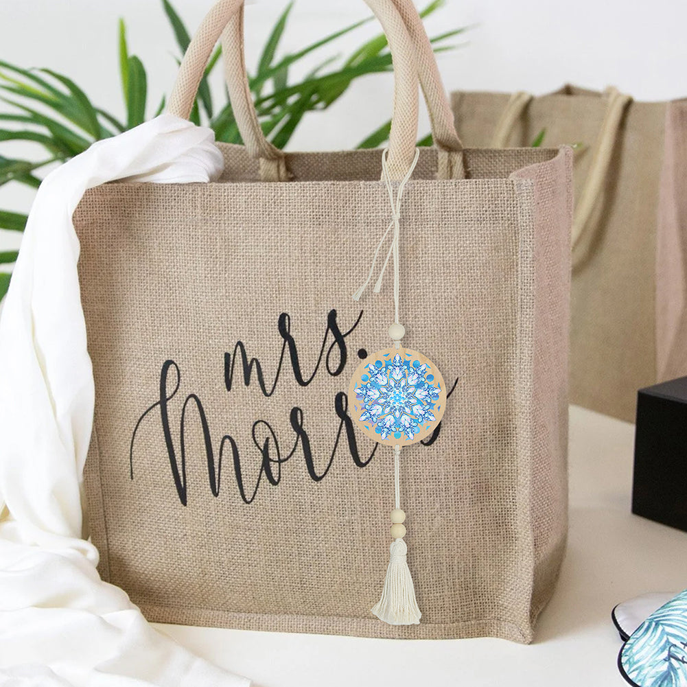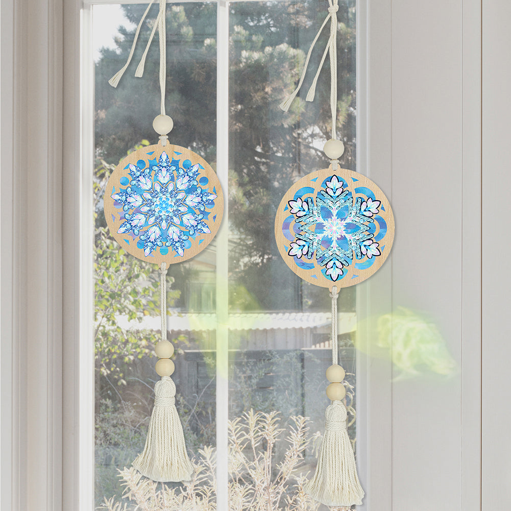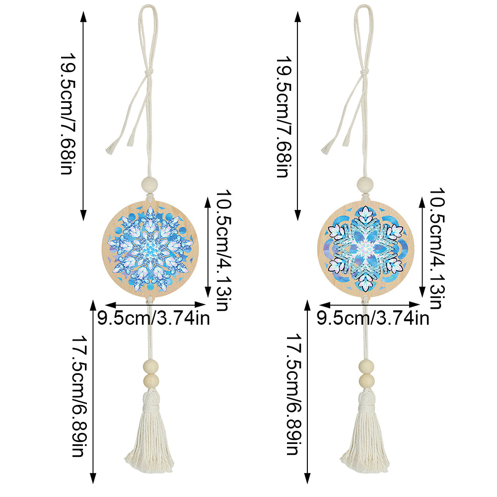 2Pcs Wooden Double Sided Snowflake Diamond Art Hanging Tassel Pendant Decoration