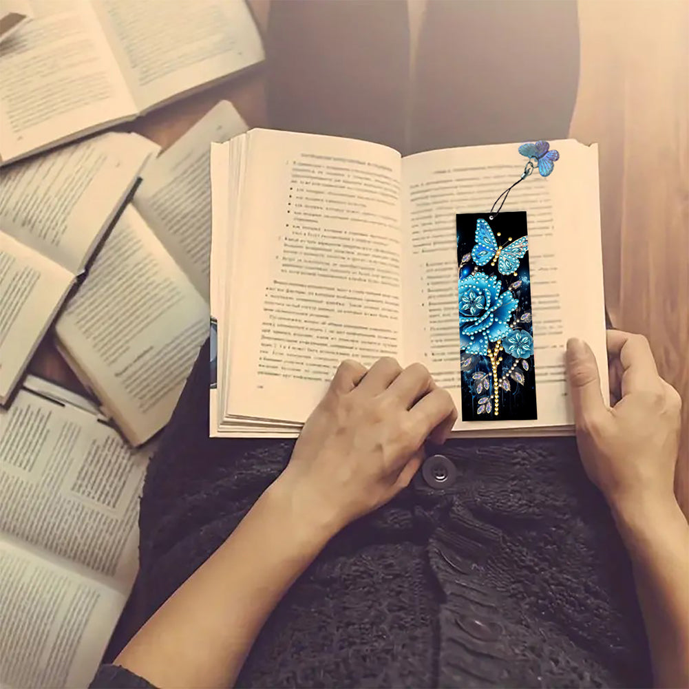 3Pcs PET Special Shaped Christmas Rose DIY Diamond Bookmark with Crystal Pendant