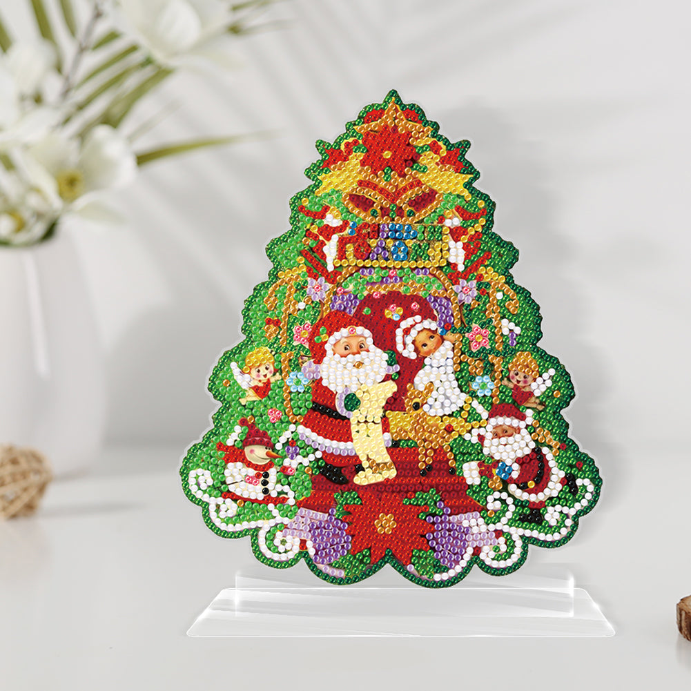 5. Stick the diamond after the completion of the Christmas tree ornaments on the bottom of the double-sided tape, tear off the double-sided tape, insert the base, will be a small pendant strung on a rope, hanging to the Christmas tree!