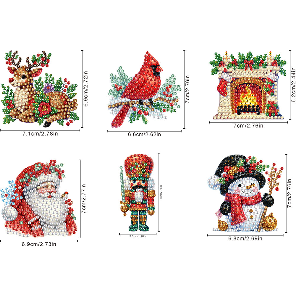 6Pcs Acrylic Christmas Diamond Art Fridge Magnet Diamond Art Magnets Decals Diamond Painting Fridge Magnet for Car Mailbox Decor