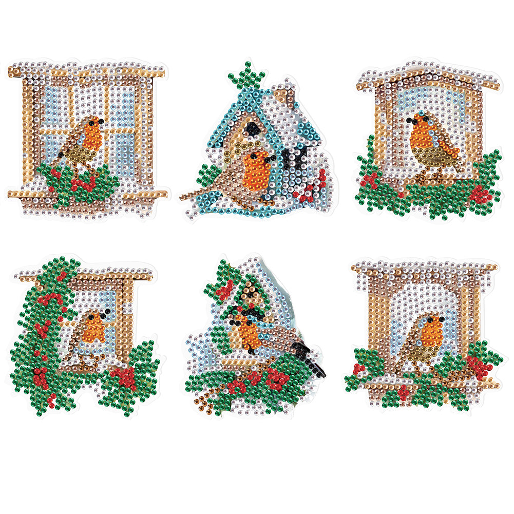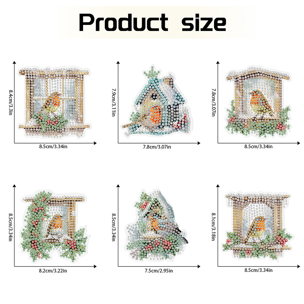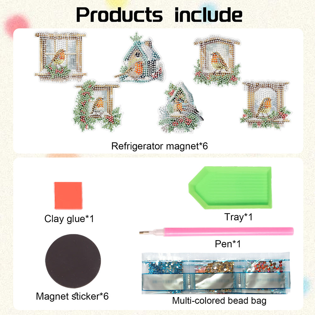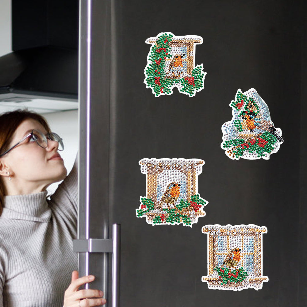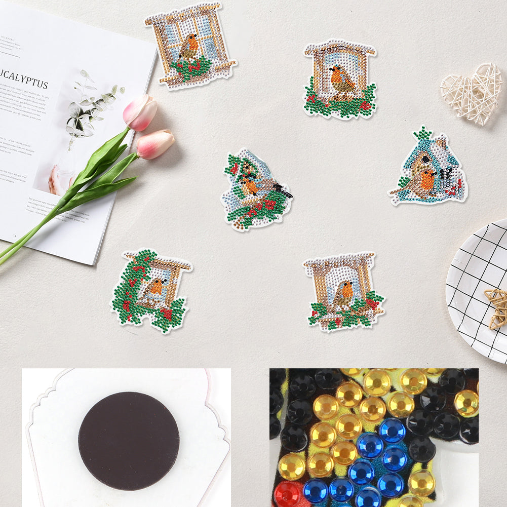 6Pcs Christmas Bird Fridge Stickers Diamond Painting Art Magnets Decals