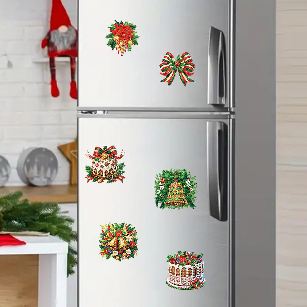 6Pcs Christmas Elements Diamond Painting Fridge Magnet for Fridge Whiteboards