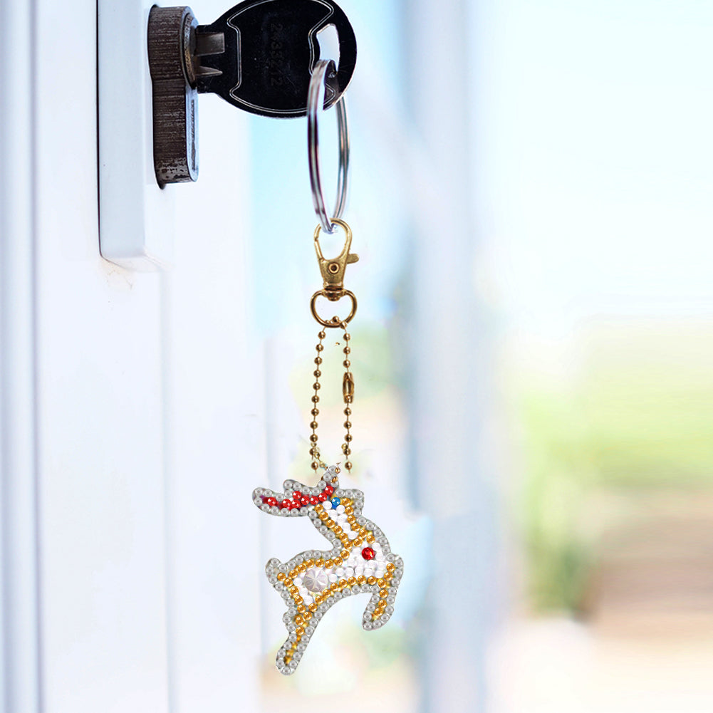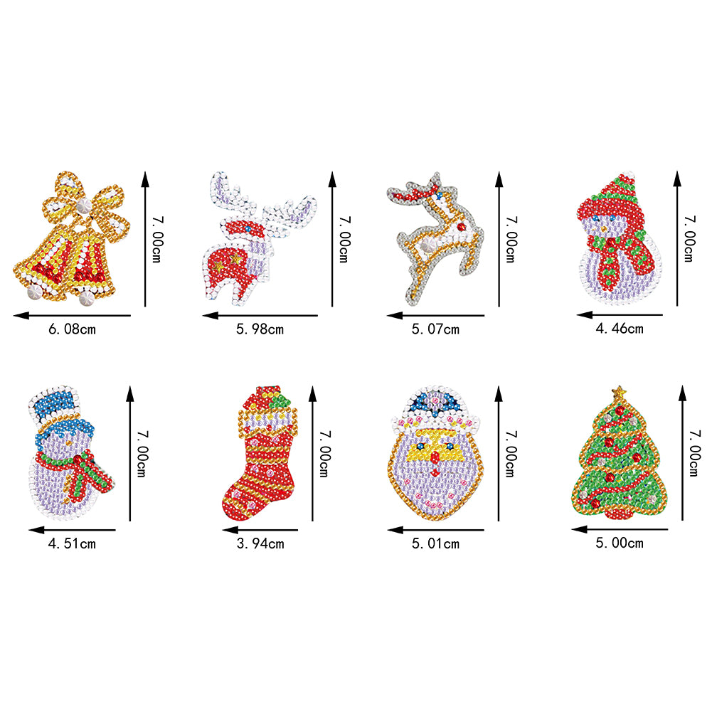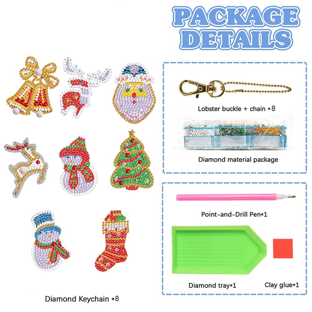 8Pcs Double Side Christmas Elements Diamond Painting Art Craft Keychain