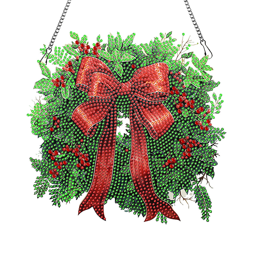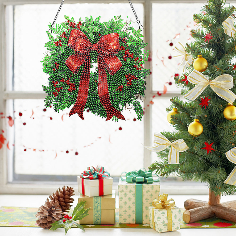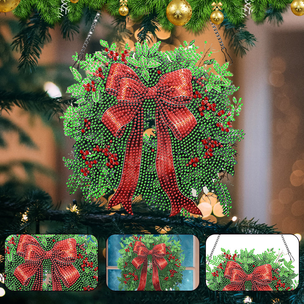 Acrylic Christmas Wreath Single-Sided Diamond Painting Hanging Pendant (#1)