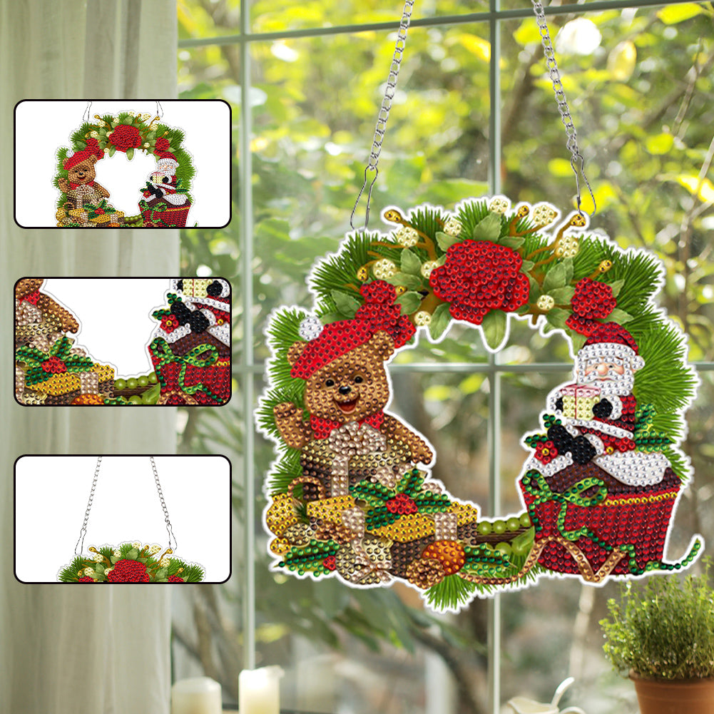 Acrylic Christmas Wreath Single-Sided Round DIY Diamond Painting Hanging Pendant