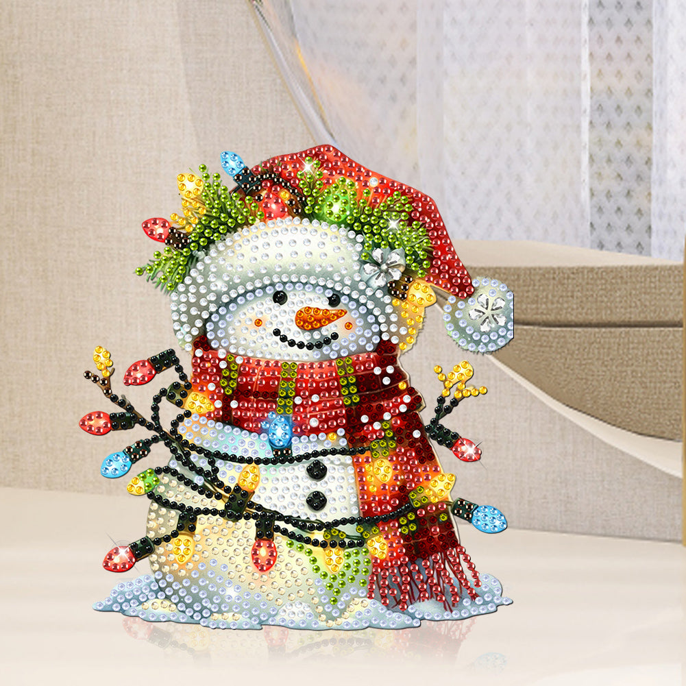 Acrylic Shaking Head Cute Christmas Desktop Diamond Art Kits (Snowman Lights)