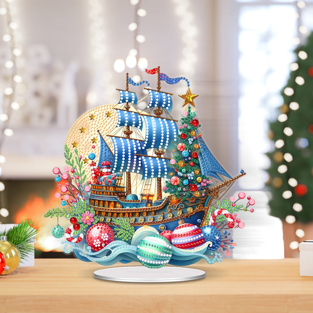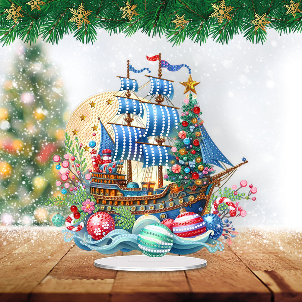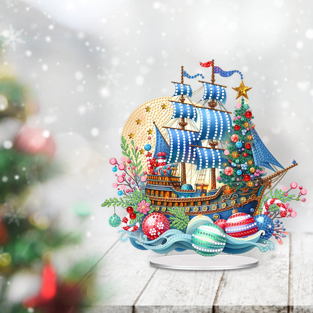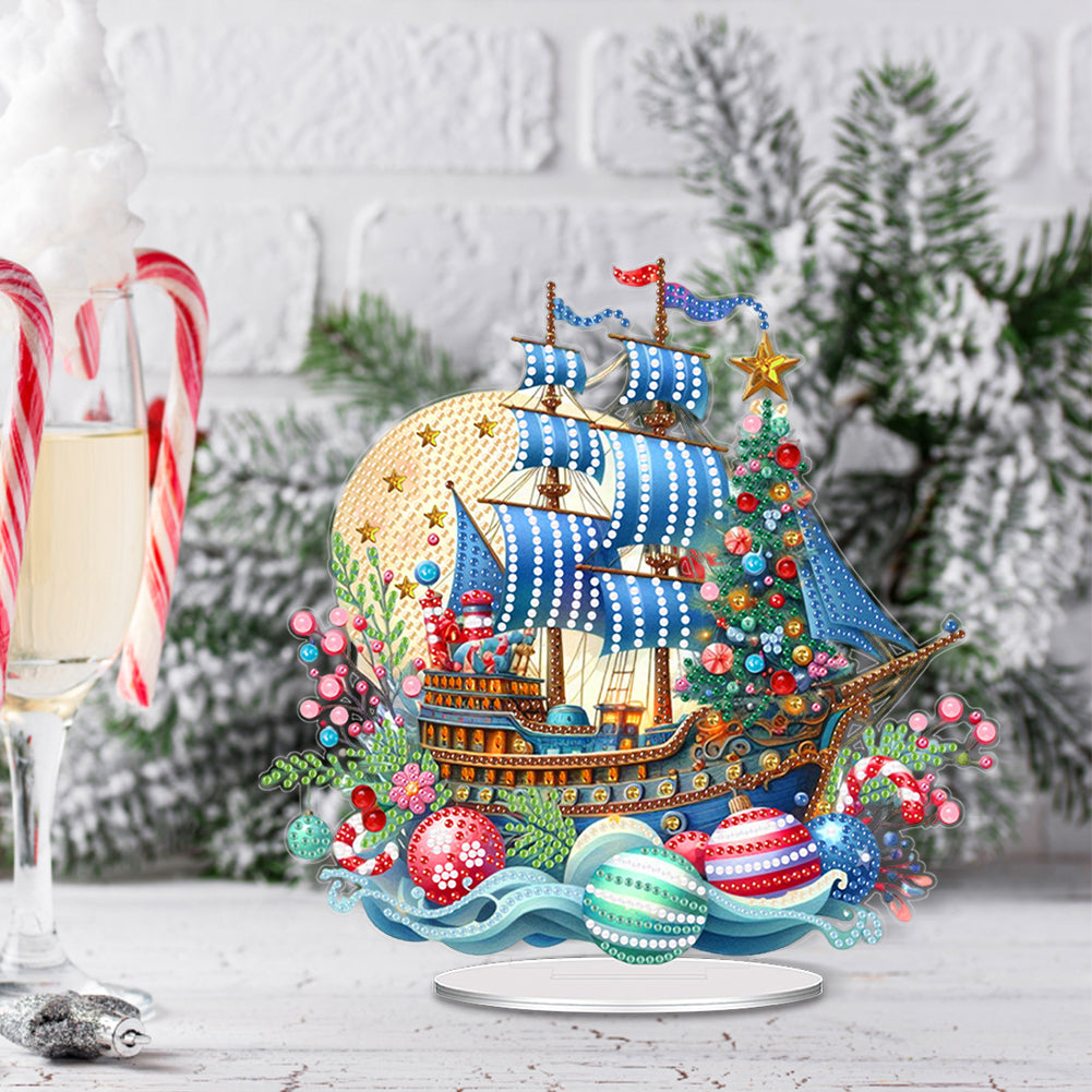 Acrylic Special Shape Christmas Sailboat Diamond Painting Tabletop Ornaments