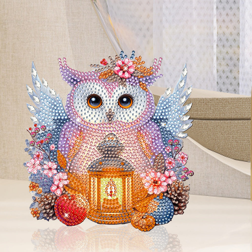 Acrylic Special Shaped Shaking Head Christmas Desktop Diamond Art Kit (Lamp Owl)