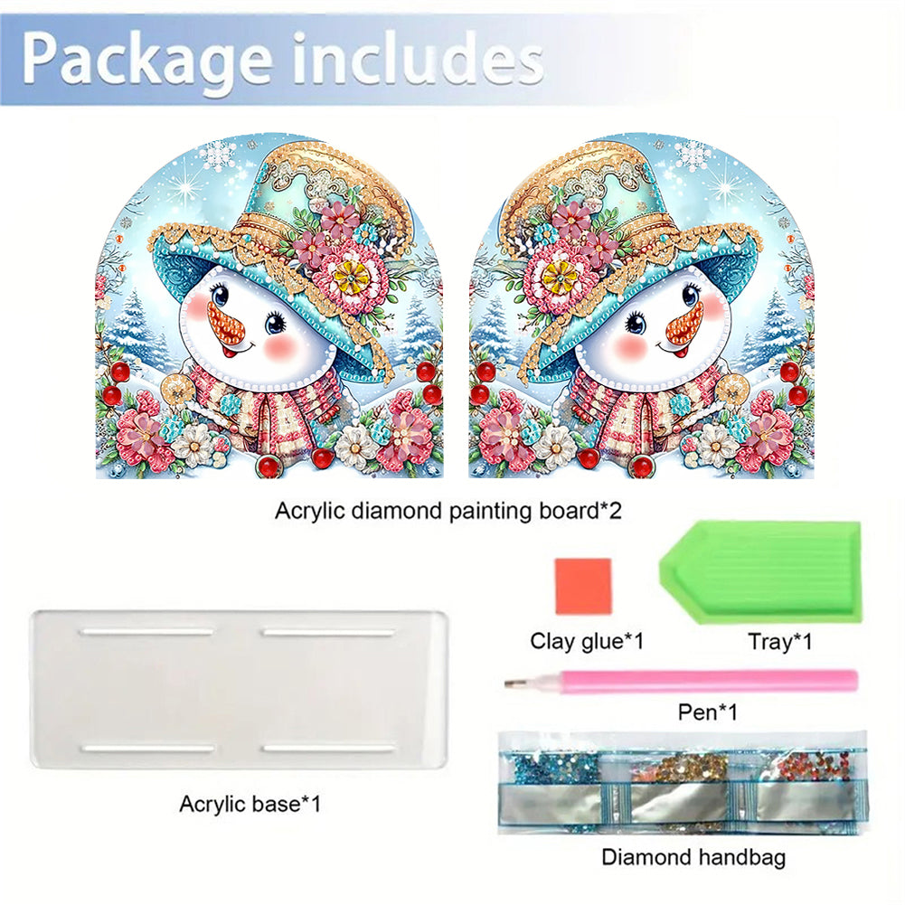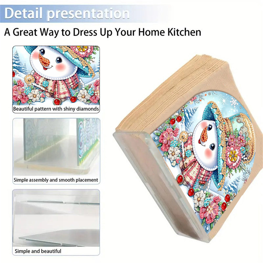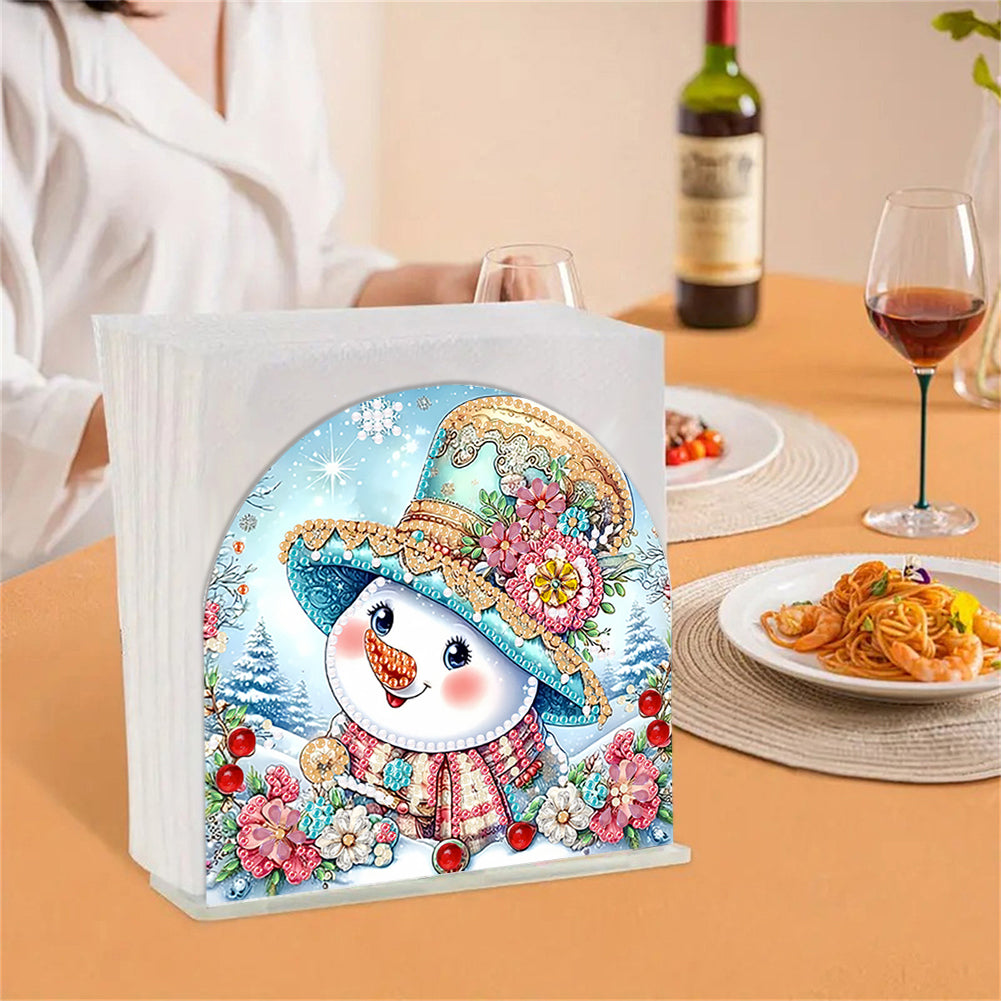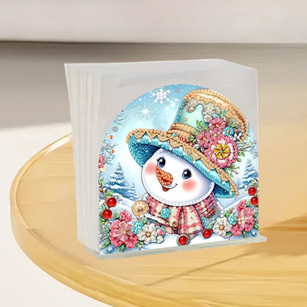Christmas Acrylic DIY Diamond Art Painting Napkin Holder Set (Christmas Snowman)