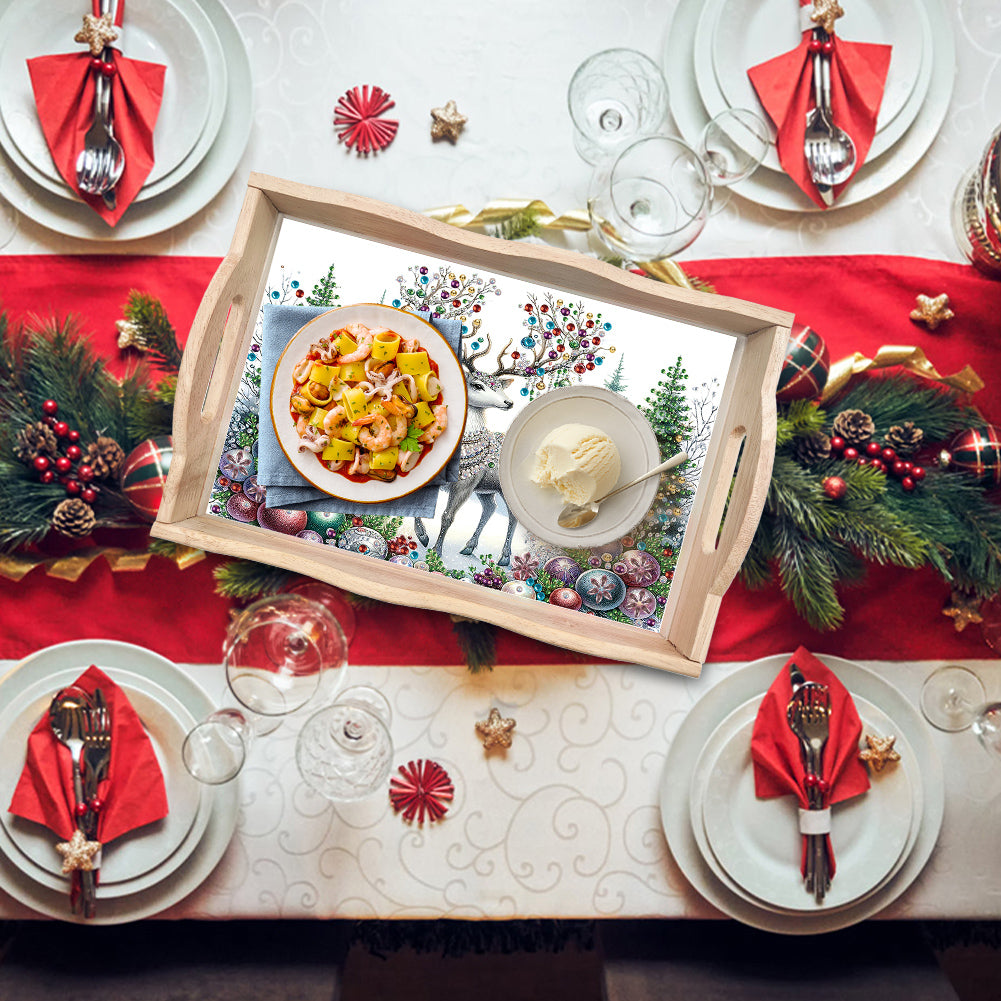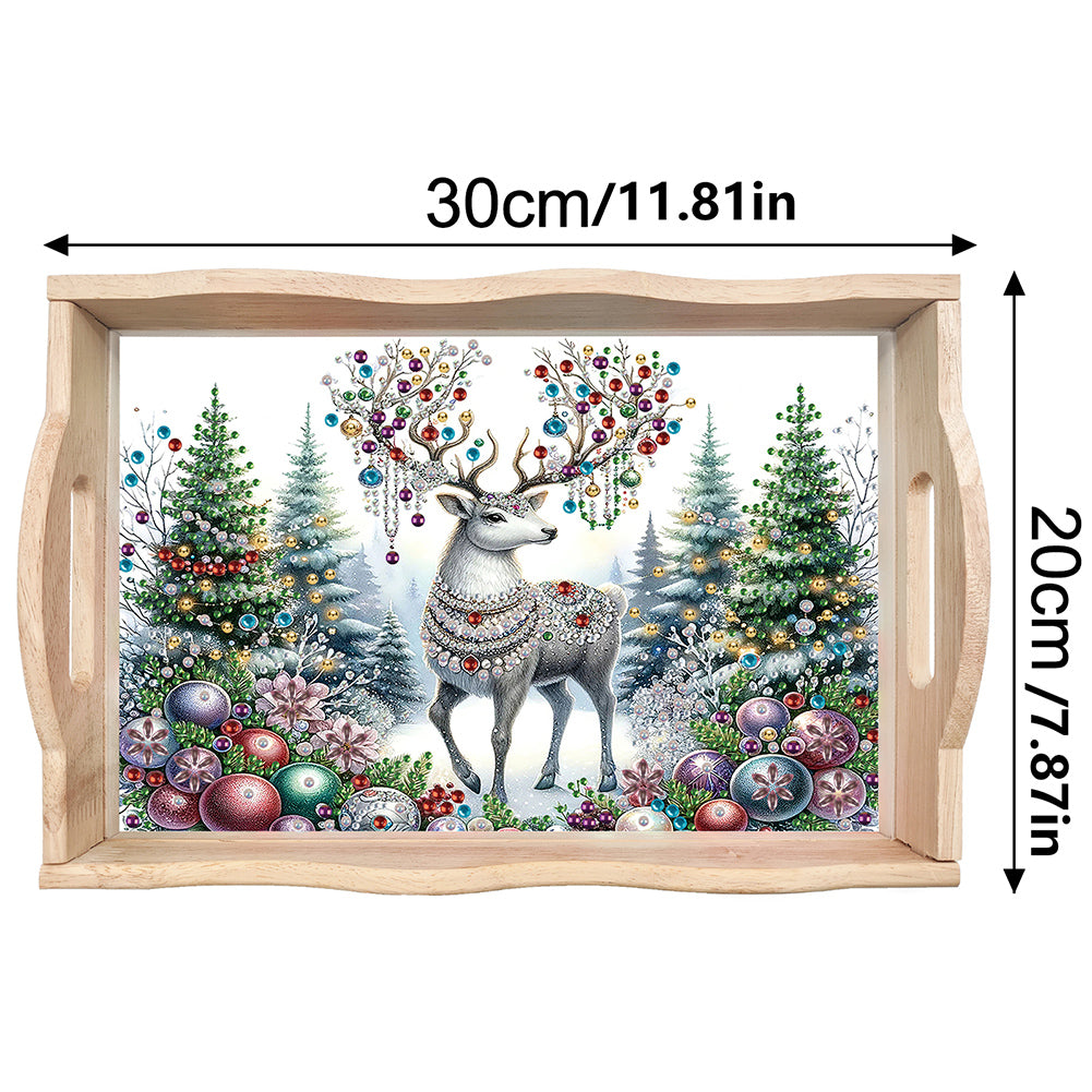 Christmas Diamond Painting Wooden Serving Tray Home Decoration (Green Elk)