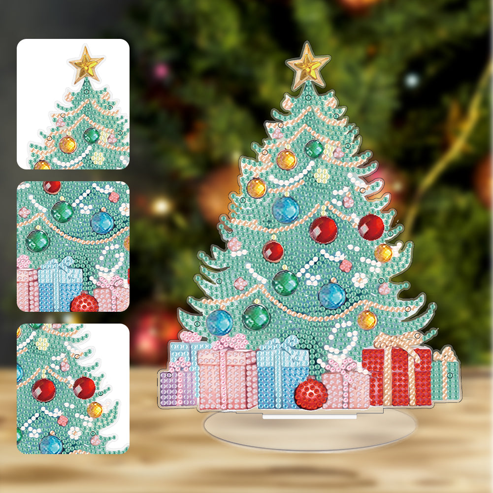5. Stick the diamond after the completion of the Christmas tree ornaments on the bottom of the double-sided tape, tear off the double-sided tape, insert the base, will be a small pendant strung on a rope, hanging to the Christmas tree!