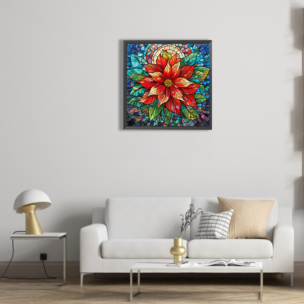 Diamond Painting - Full Round - Christmas red flower glass painting (30*30CM)