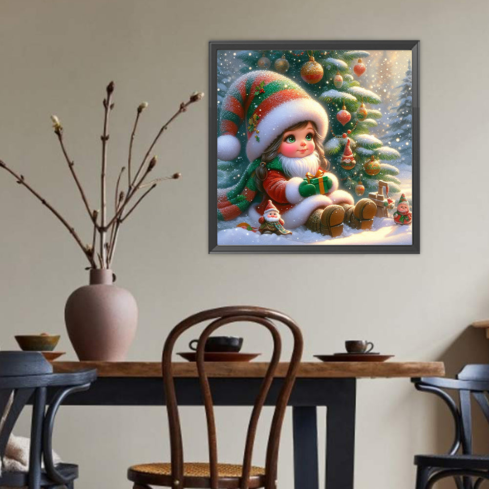 Diamond Painting - Full Round - Christmas tree and girl (40*40CM)