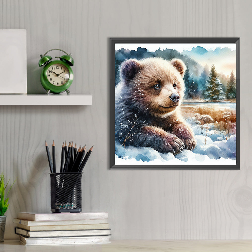 Diamond Painting - Full Round - grizzly bear in snow (30*30CM)