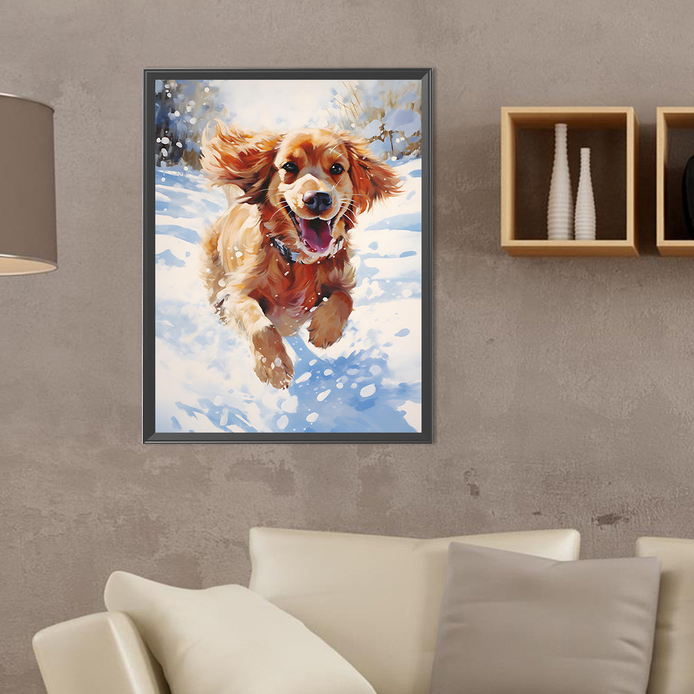 Diamond Painting - Full Round - Little golden retriever in the snow (30*40CM)