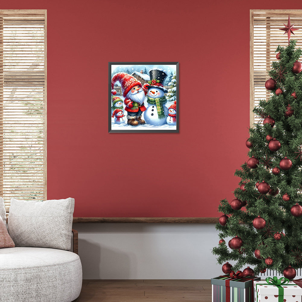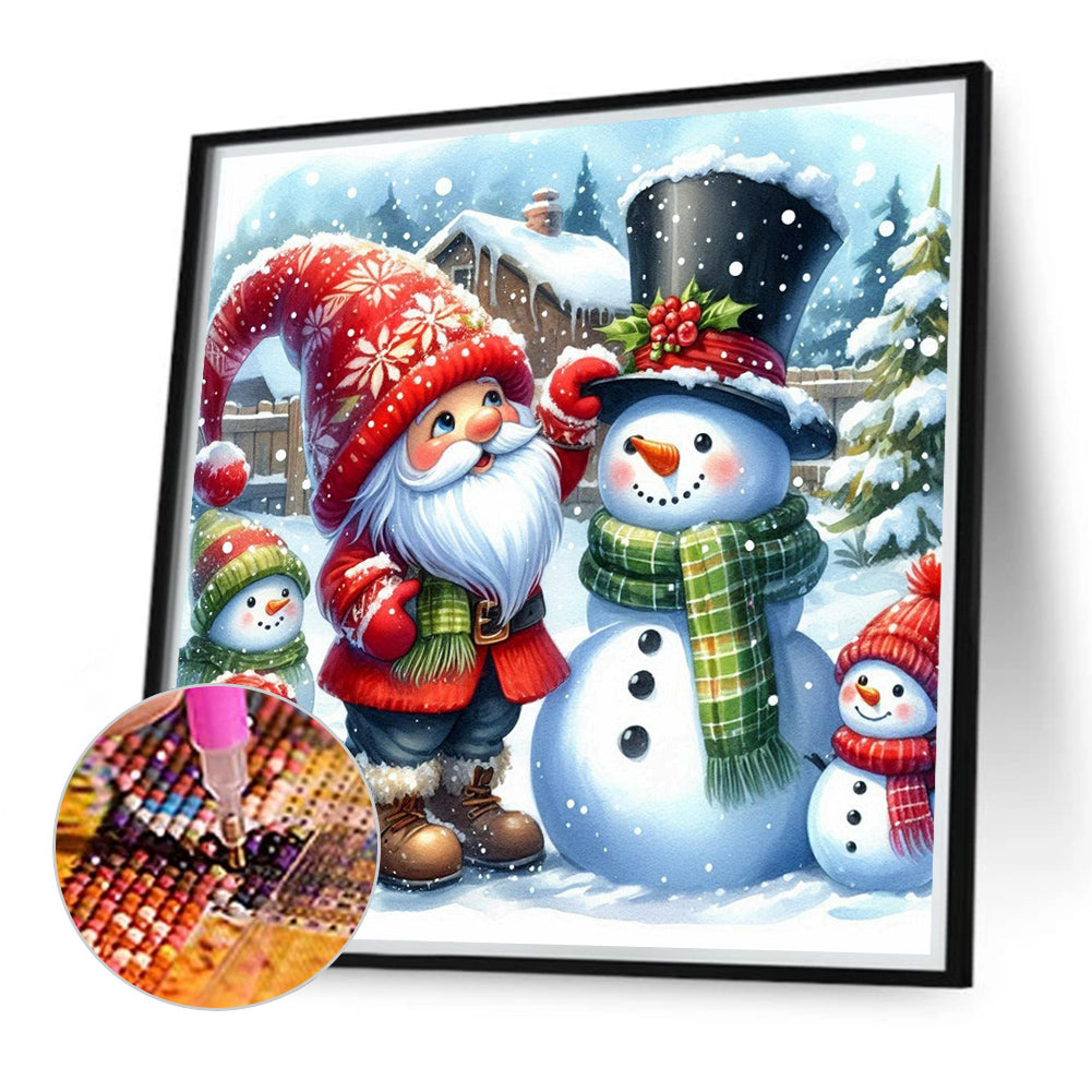 Diamond Painting - Full Round - Red gnome and snowman (40*40CM)