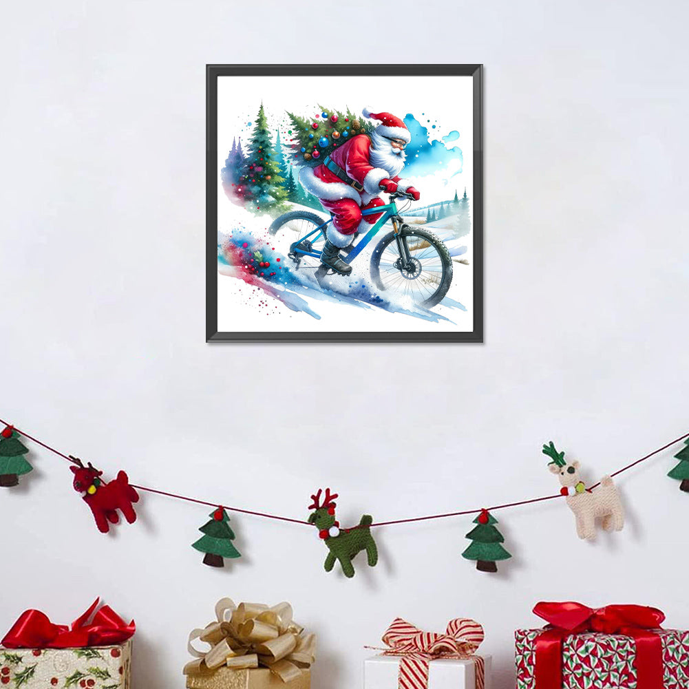 Diamond Painting - Full Round - Santa Claus riding a bike (30*30CM)
