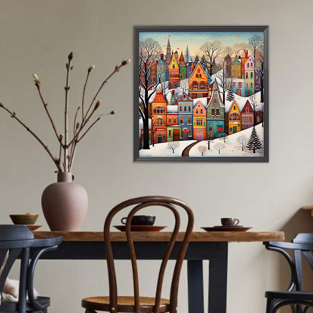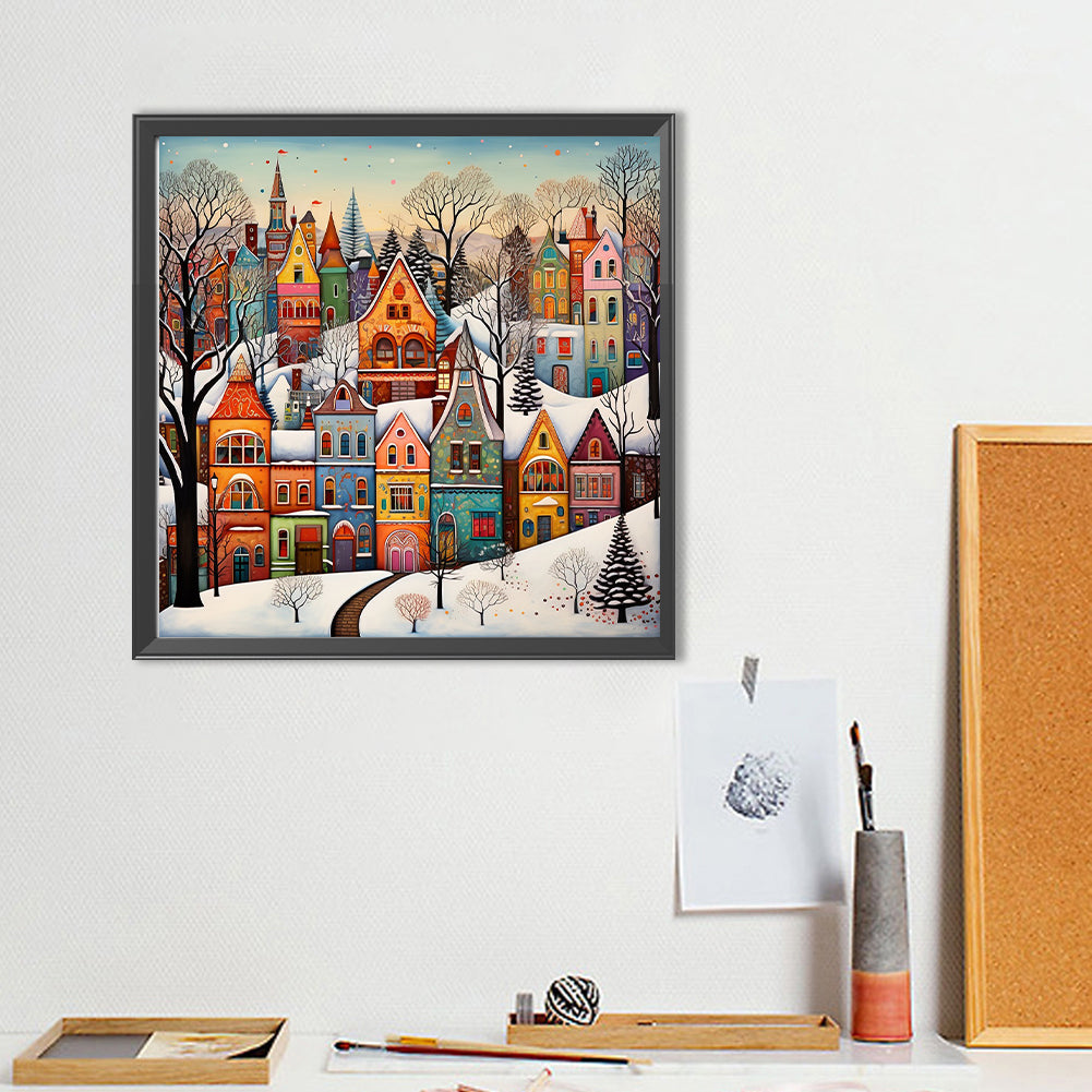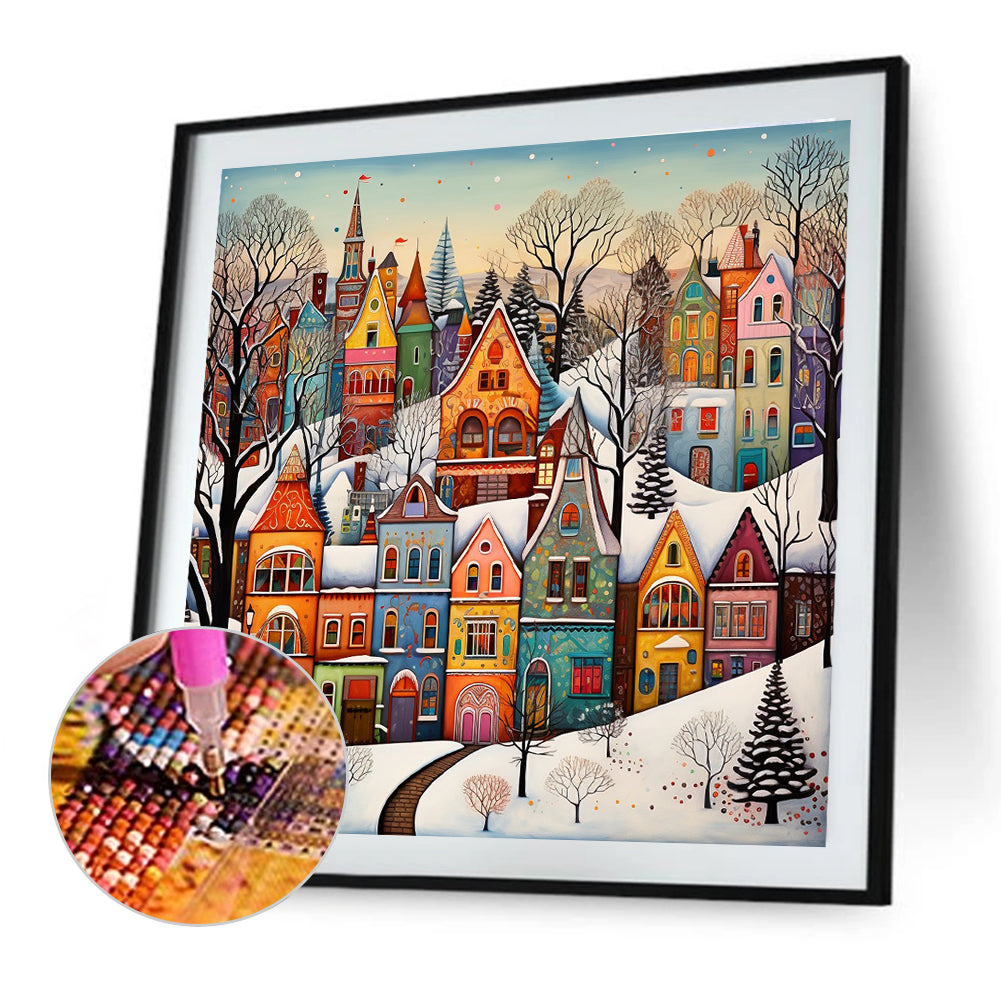 Diamond Painting - Full Round - Snowy town streets (40*40CM)