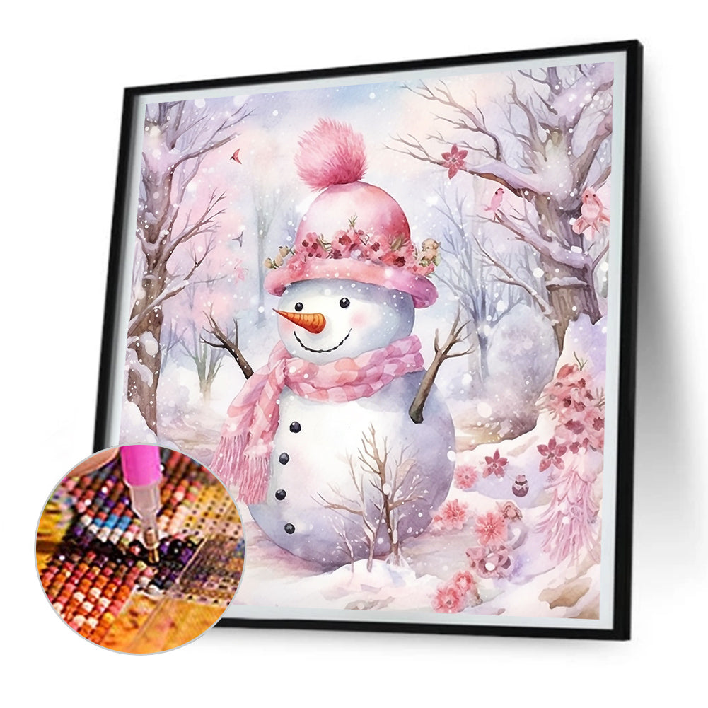 Diamond Painting - Full Round - Winter pink snowman (30*30CM)