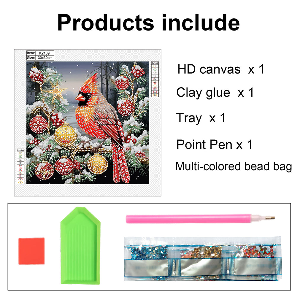 Diamond Painting - Partial Special Shaped - Christmas atmosphere cardinal (30*30CM)