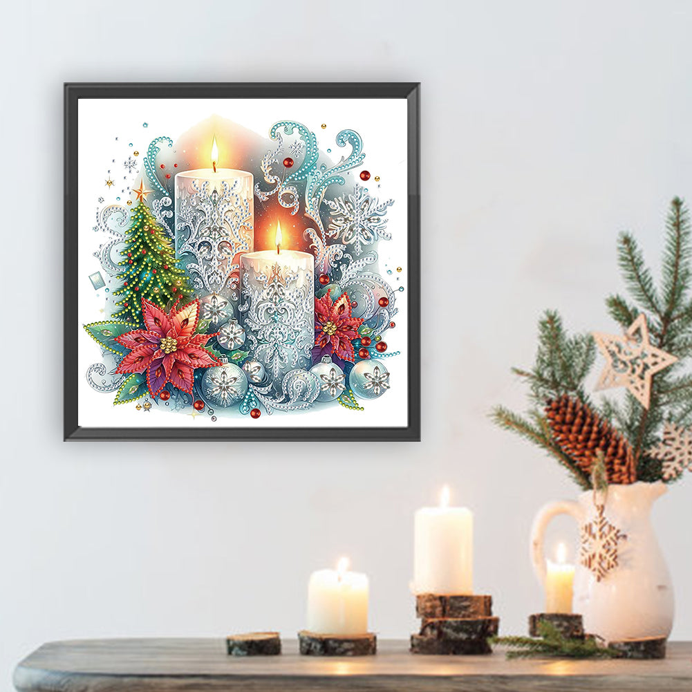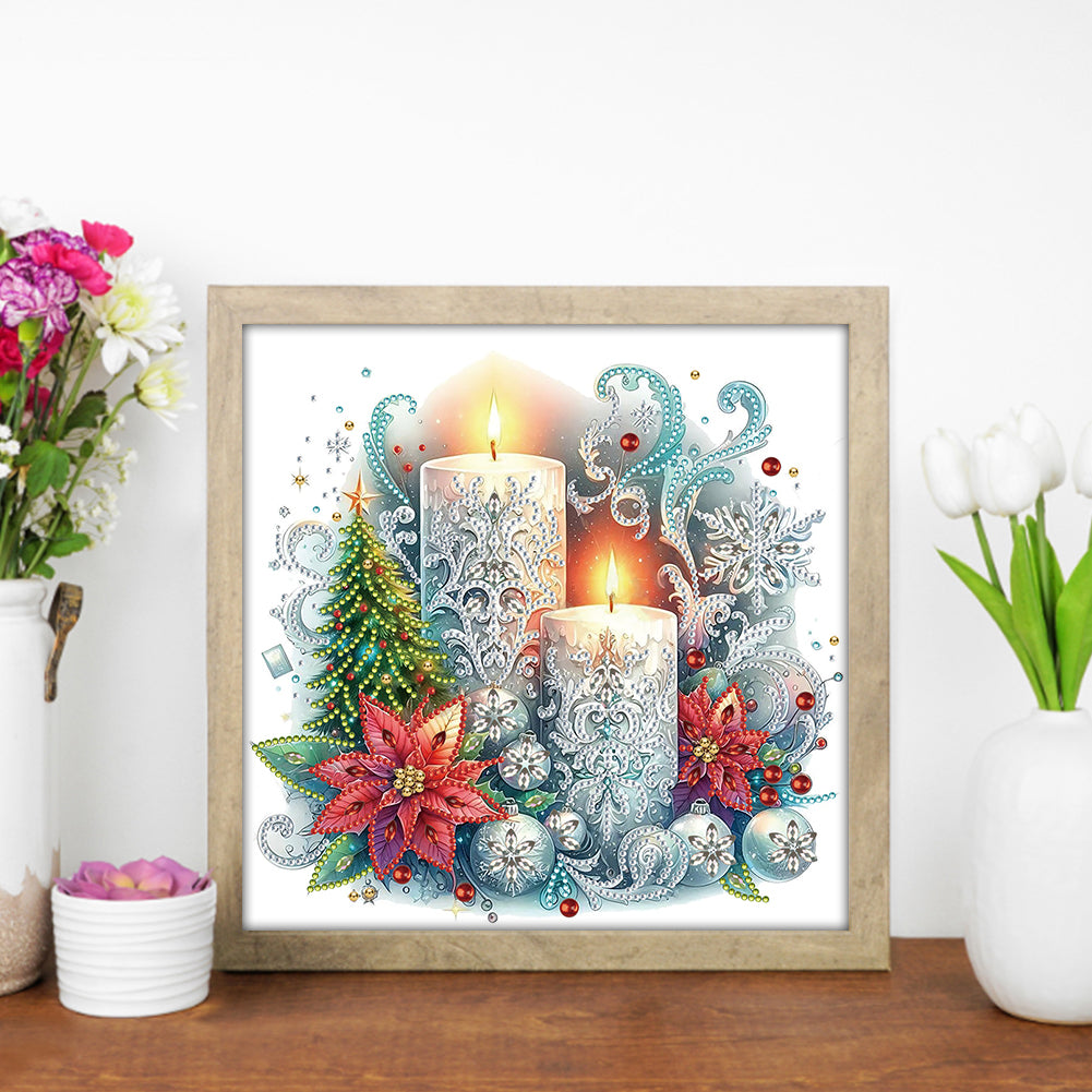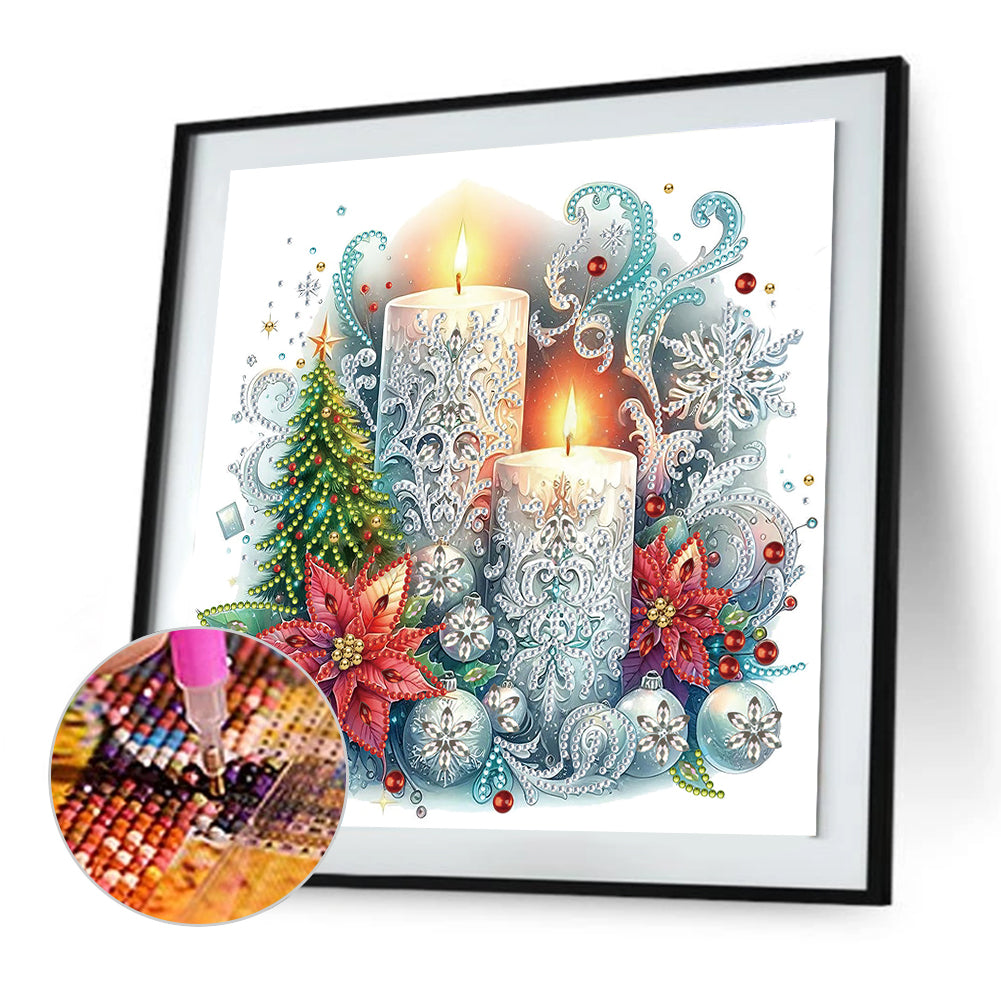 Diamond Painting - Partial Special Shaped - Christmas double candle (30*30CM)