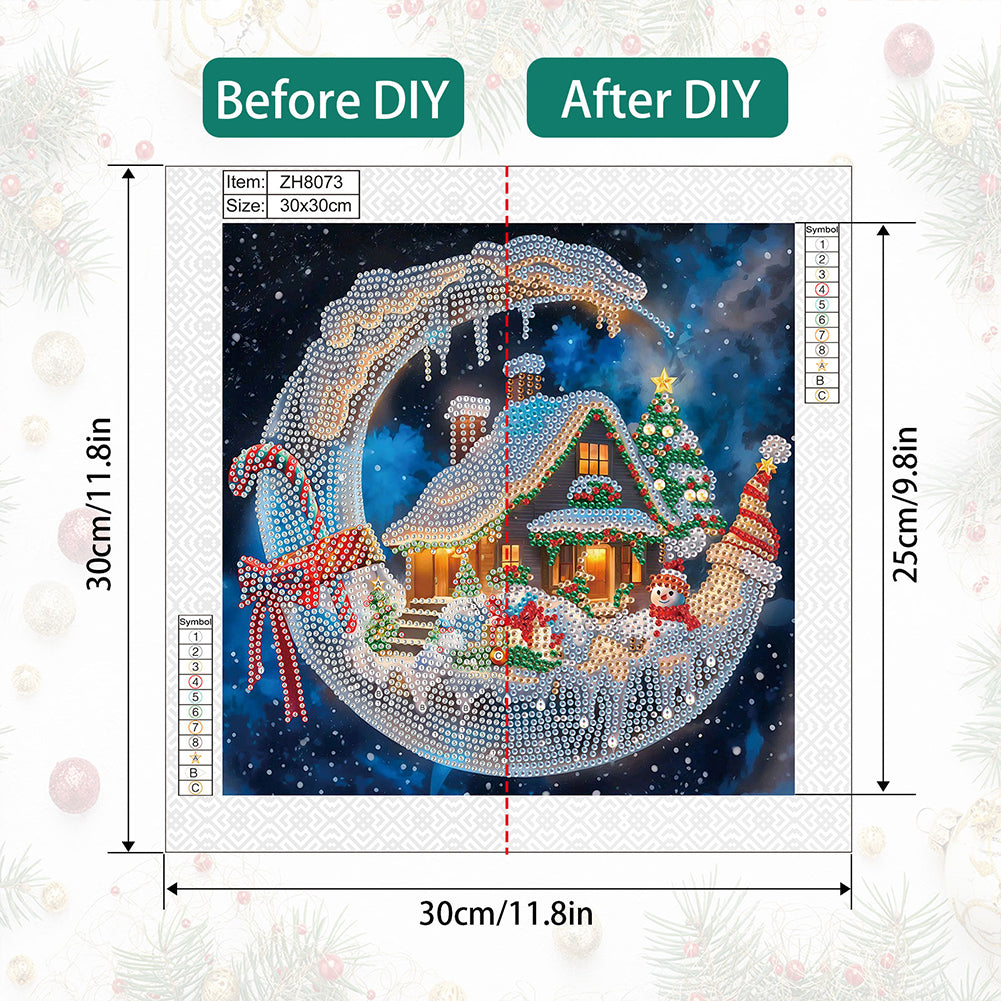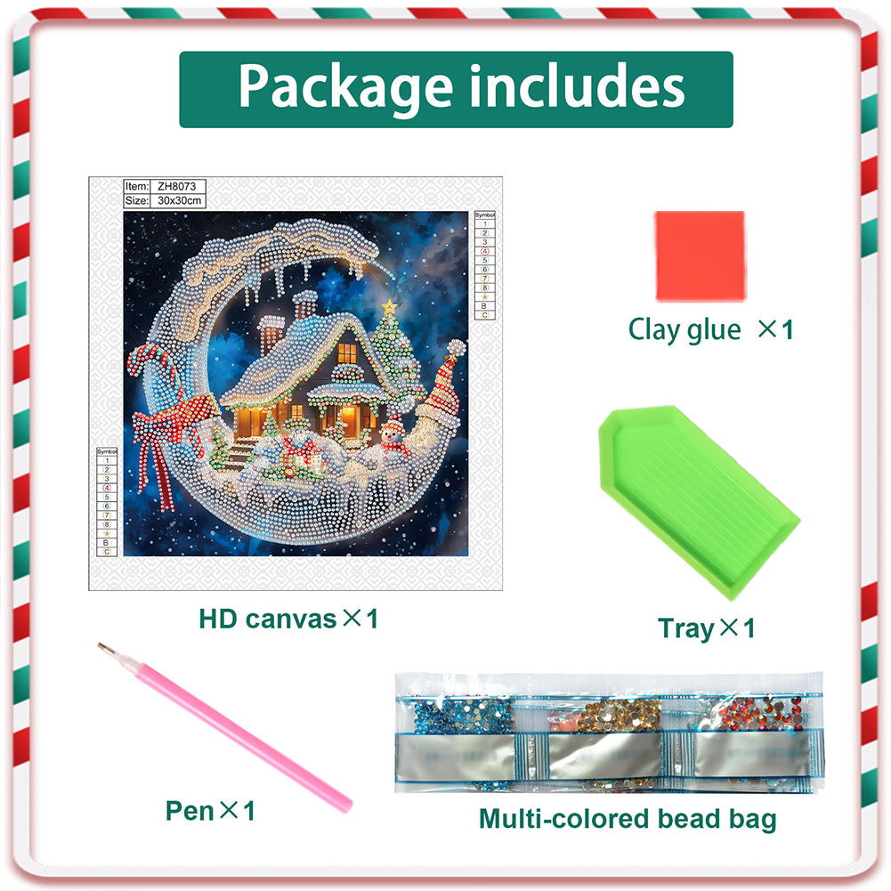 Diamond Painting - Partial Special Shaped - Christmas moonlight house (30*30CM)