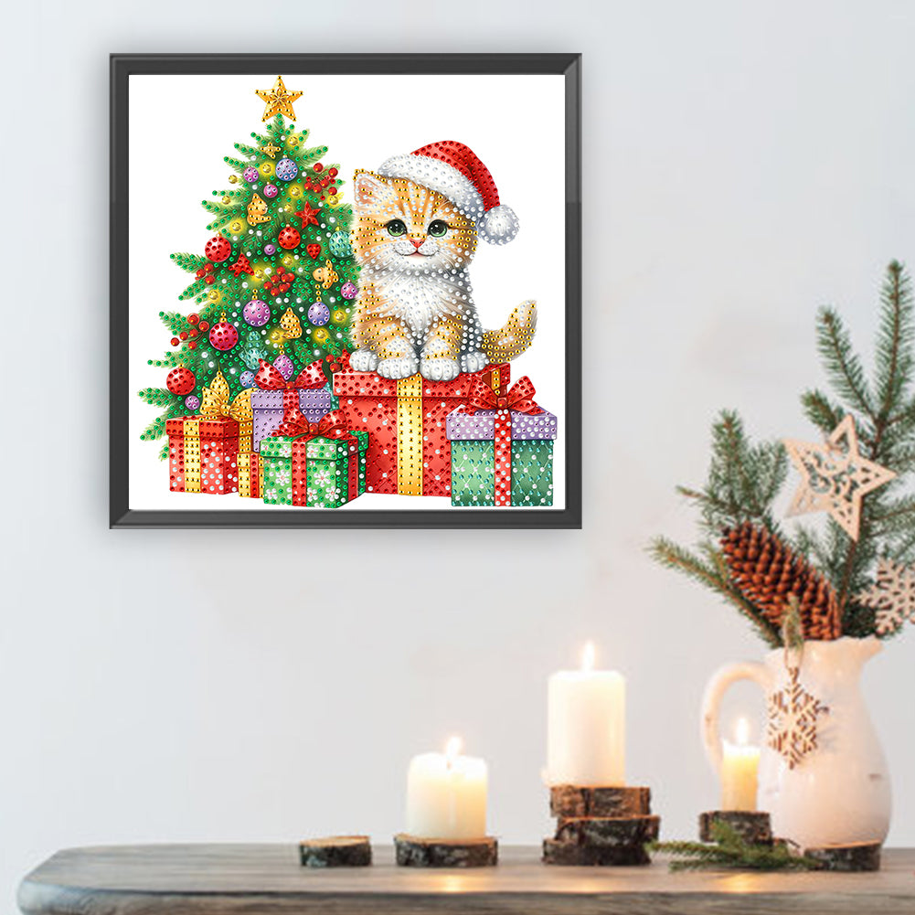 Diamond Painting - Partial Special Shaped - Christmas tree and cat (30*30CM)