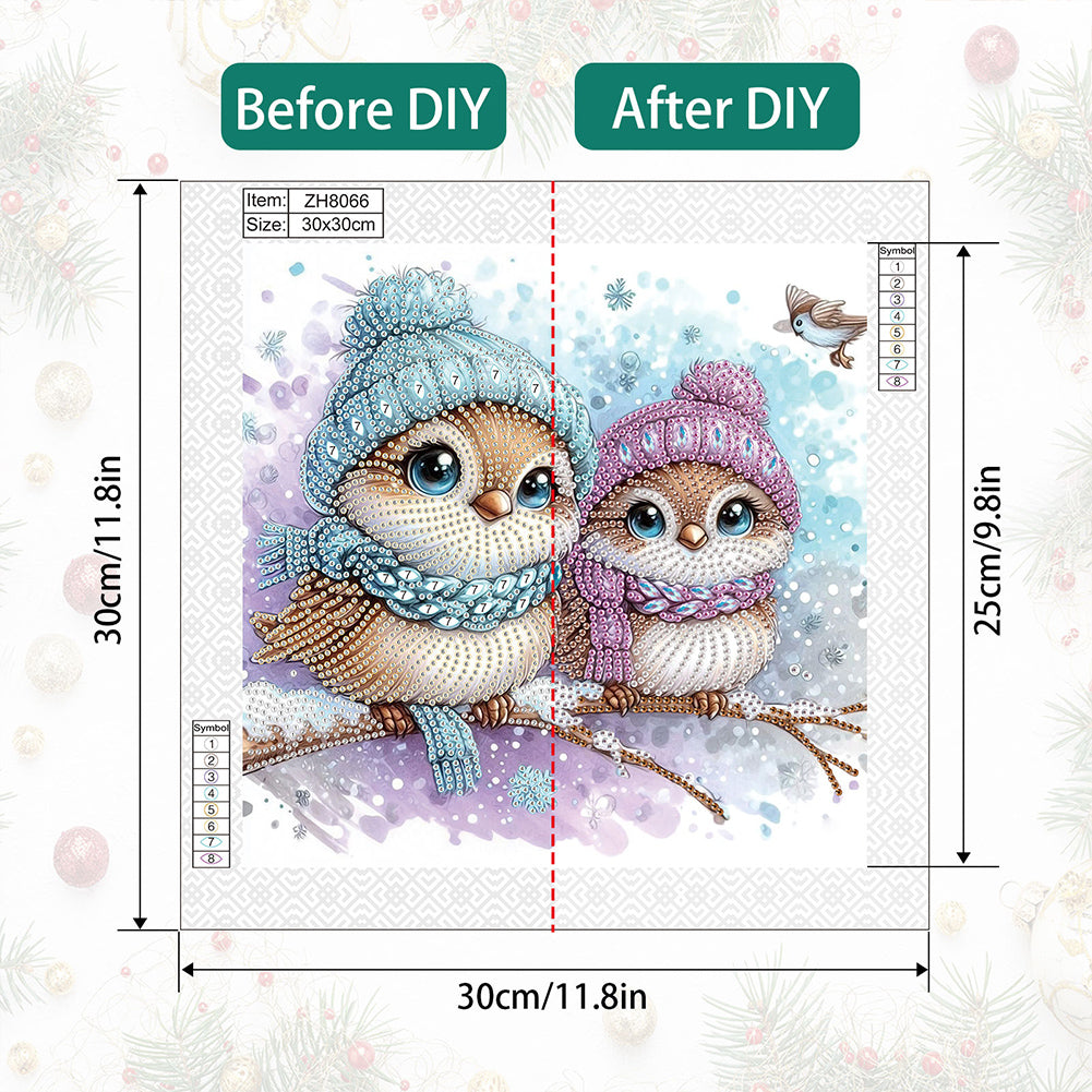 Diamond Painting - Partial Special Shaped - Cute Christmas bird (30*30CM)