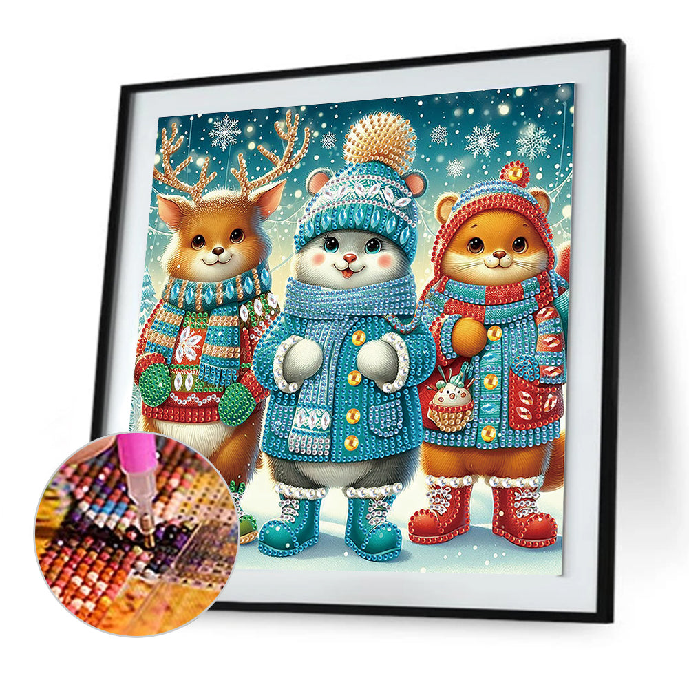 Diamond Painting - Partial Special Shaped - Deer in winter snow (30*30CM)