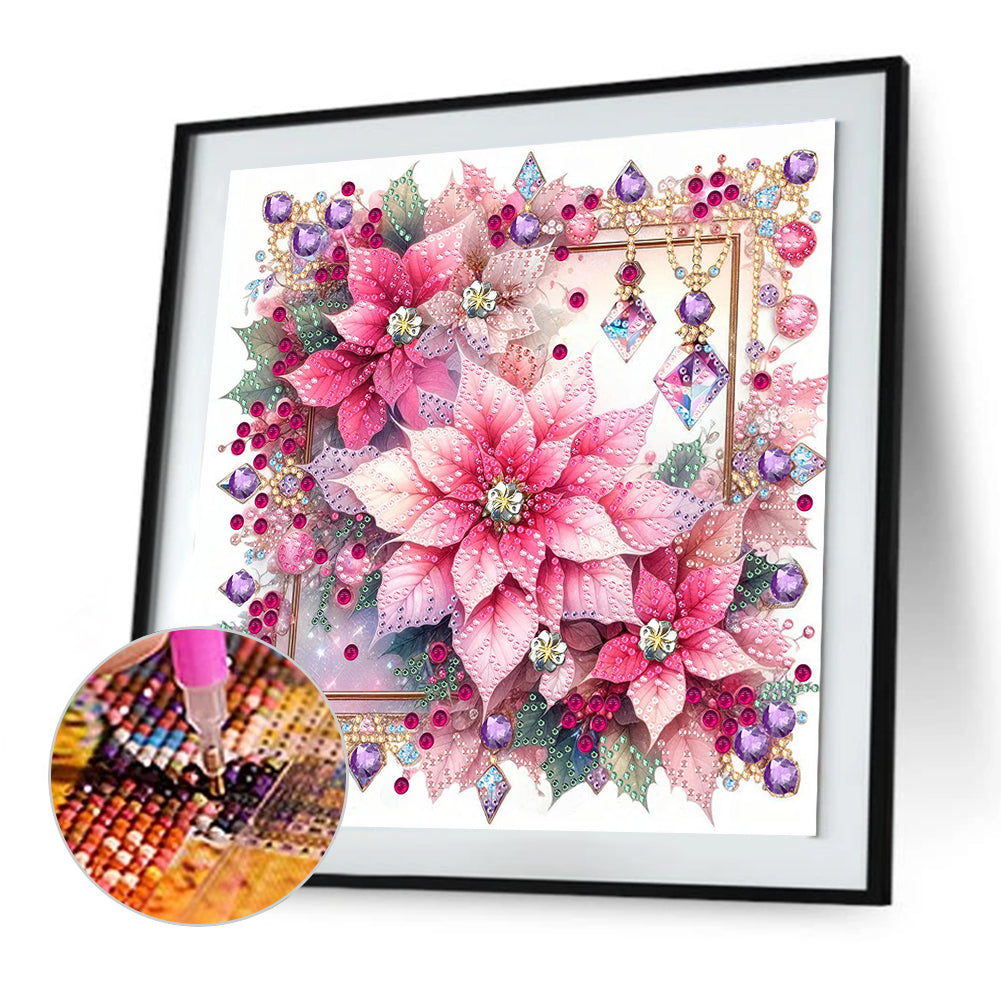 Diamond Painting - Partial Special Shaped - Pink Christmas flower (30*30CM)