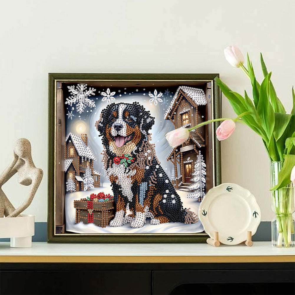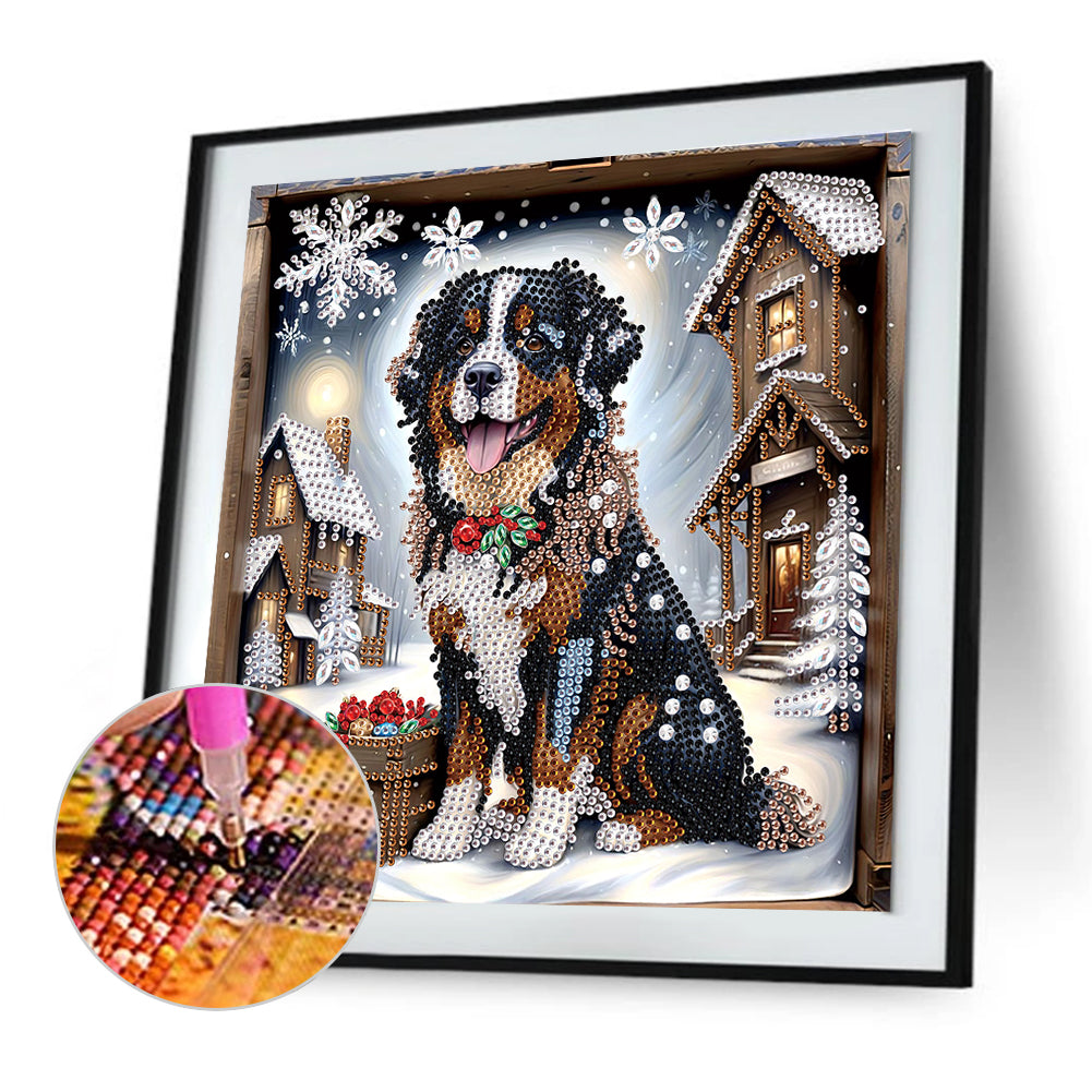 Diamond Painting - Partial Special Shaped - Puppy in winter snow (30*30CM)