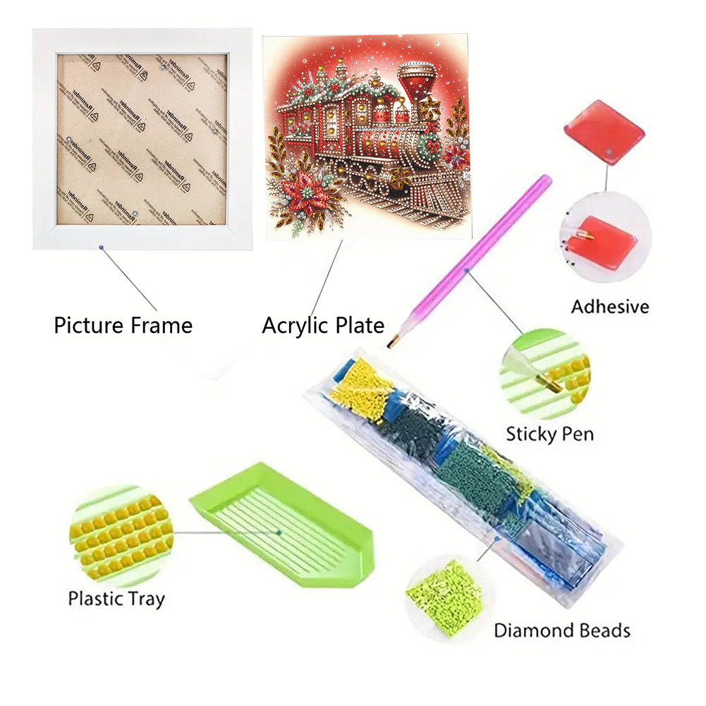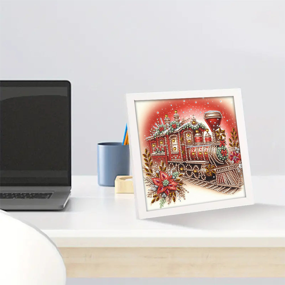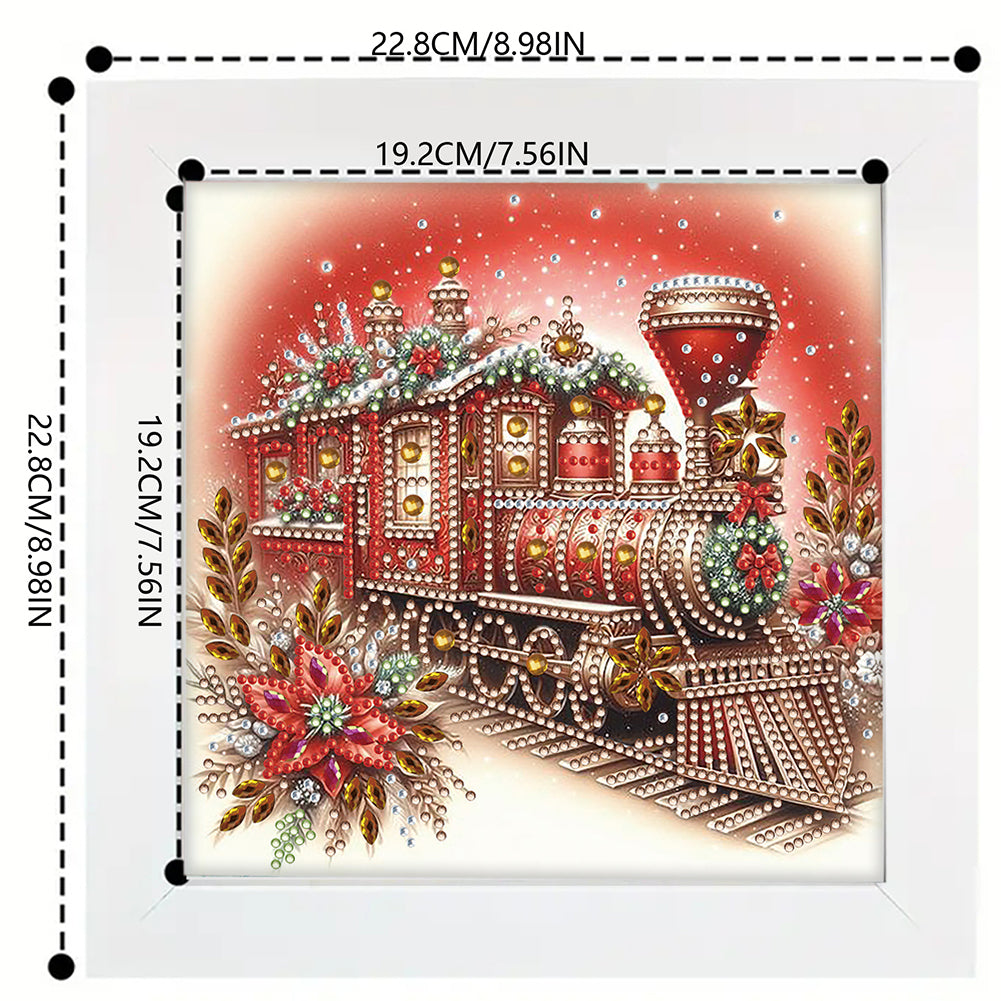 Diamond Painting - Partial Special Shaped - Red Christmas train (with framed) (2*19.2CM)