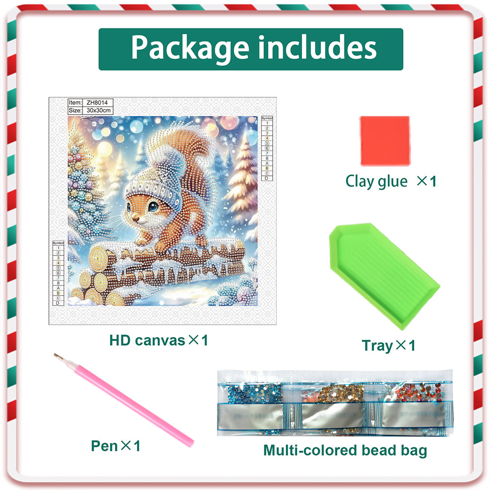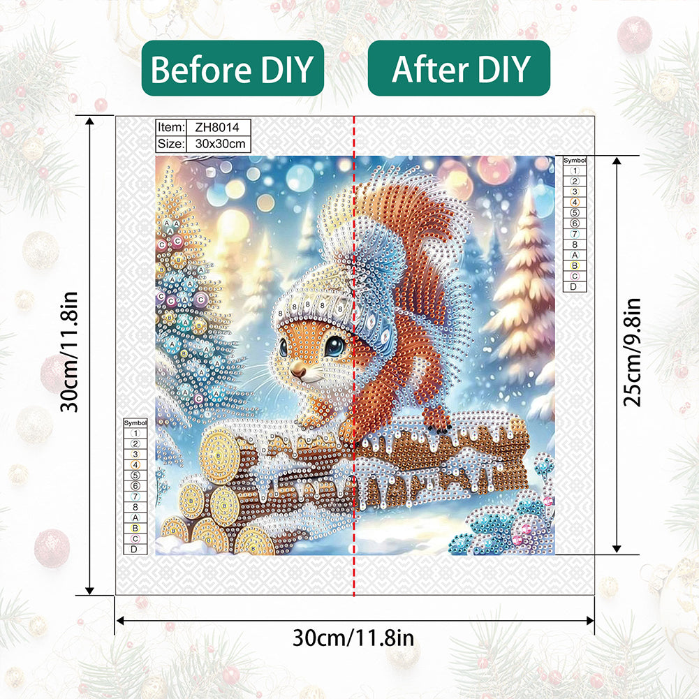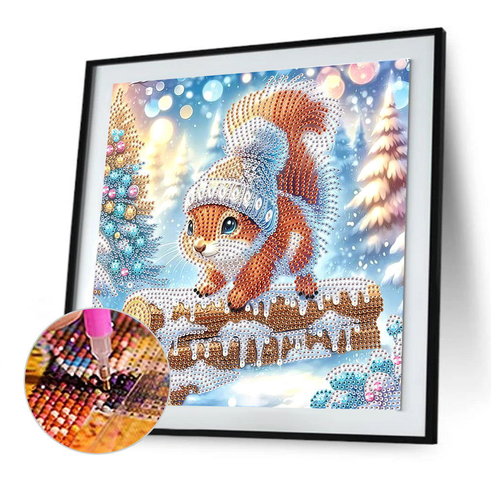Diamond Painting - Partial Special Shaped - Squirrel in winter snow (30*30CM)
