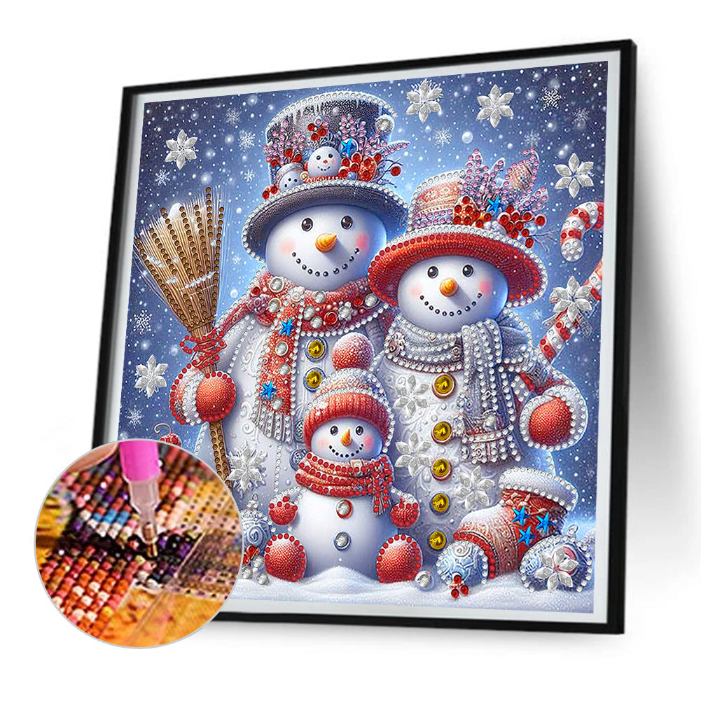Diamond Painting - Partial Special Shaped - Winter snowman family (30*30CM)