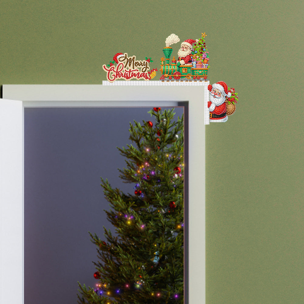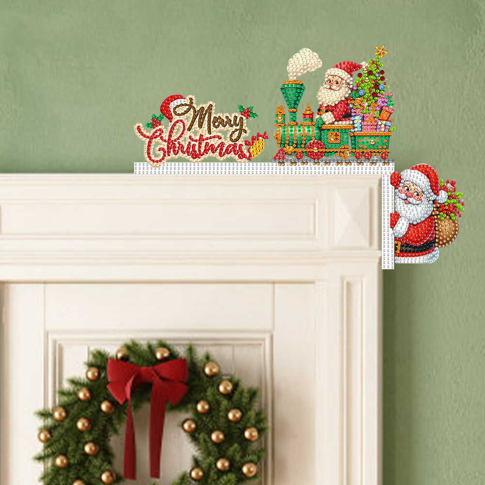 Wooden Santa Claus 5D DIY Diamond Painting Door Topper Decor for Party Ornament