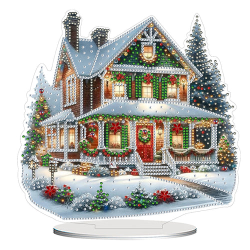 2D Flat Print Xmas House DIY Diamond Painting Desktop Decorations for Home Christmas
