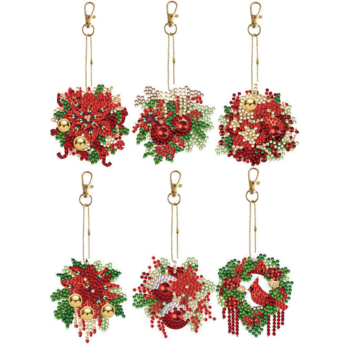 6PCS Double Sided Special Shape Diamond Painting Keychain (Christmas Wreath)