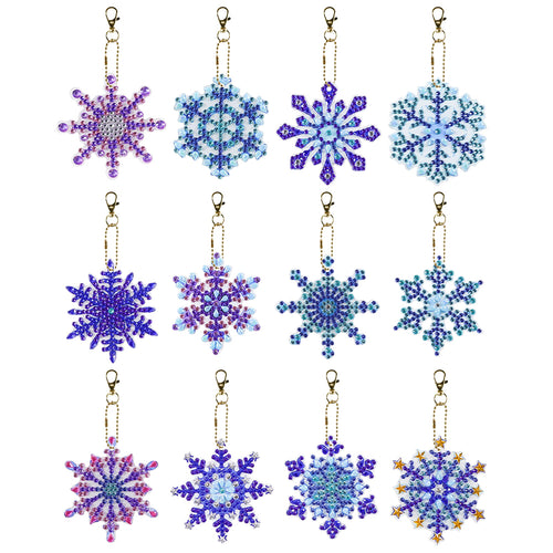 12PCS Diamond Art Keyring Snowflakes Double Sided Diamond Painting Keychain (#2)