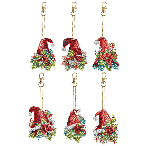 6PCS Double Sided Special Shape Diamond Painting Keychain (Christmas Hat)