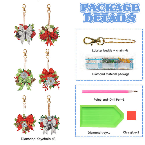 6PCS Double Sided Special Shape Diamond Painting Keychain (Christmas Bow)