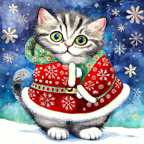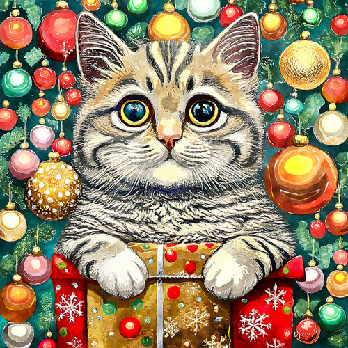 Diamond Painting - Full Round - Christmas kitten (30*30CM)