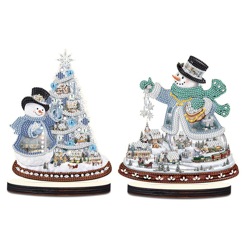 2PCS Wooden Xmas Snowman Desktop Diamond Painting Ornament (#3)