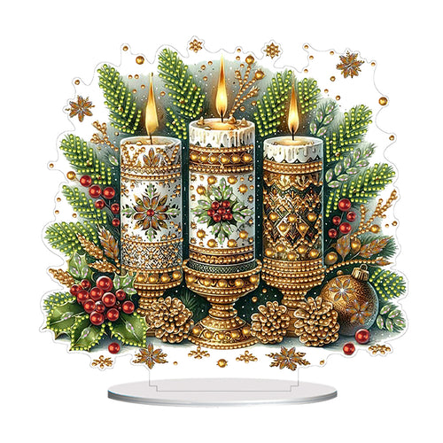 Acrylic Special Shape Christmas Candle Diamond Painting Desktop Ornaments